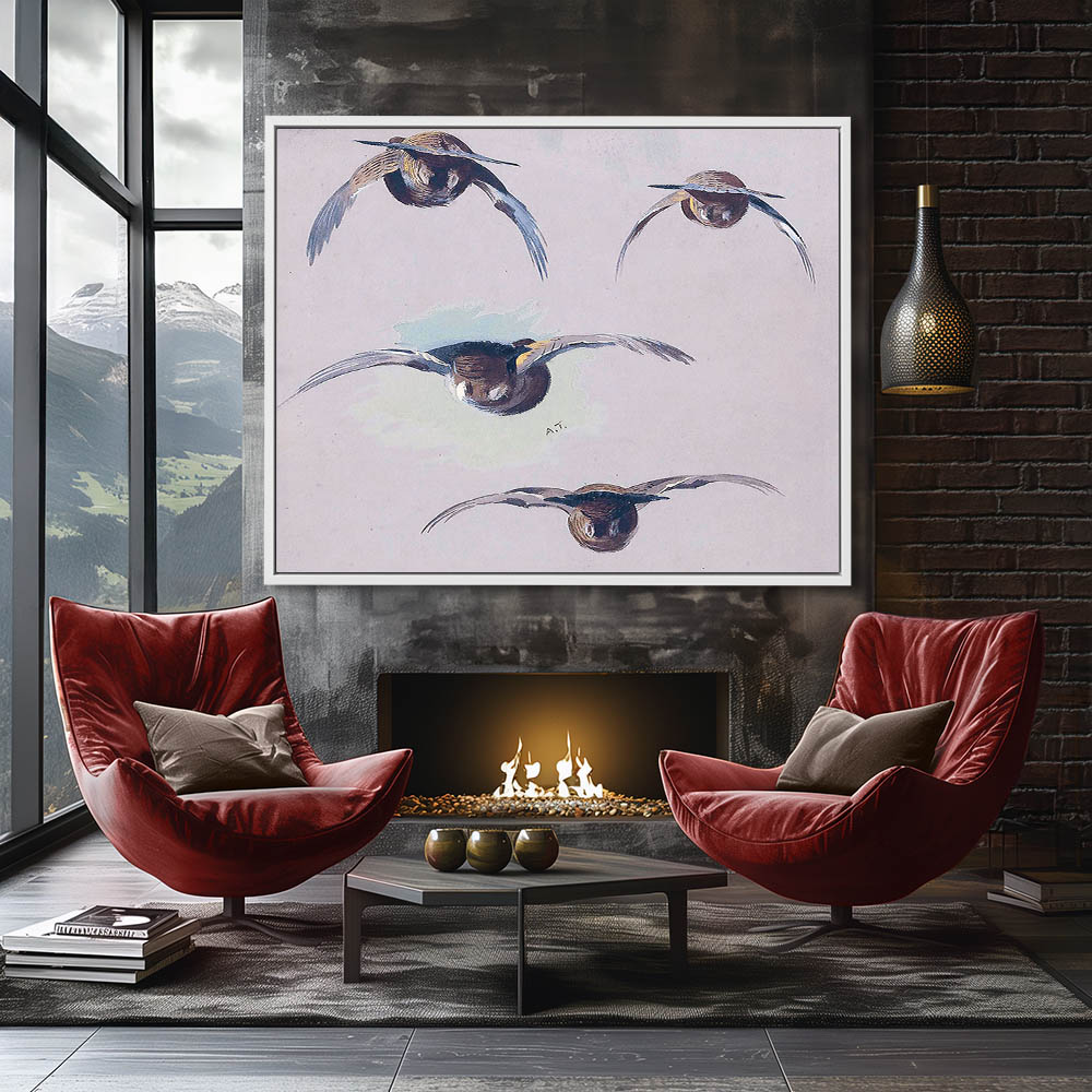 A Sheet of Studies of Grouse in Flight Seen from Behind