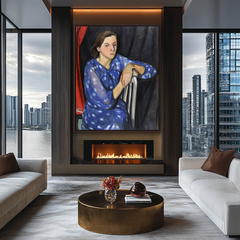 Vintage Figurative Portrait Painting of a Seated Woman