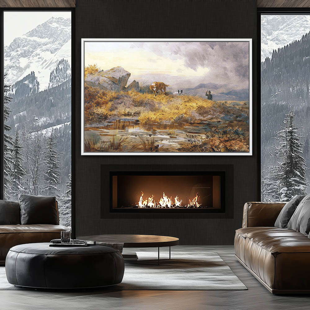 Landscape Painting with Dogs and a Hunter
