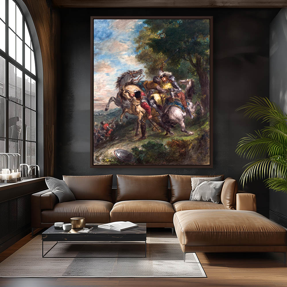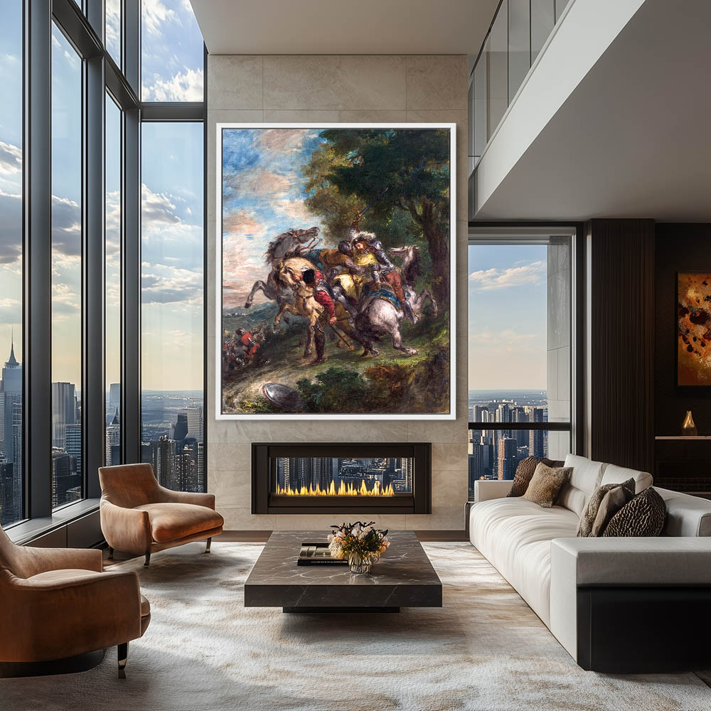 Vintage Figurative Landscape Painting of a Turk Surrendering to a Greek Horseman