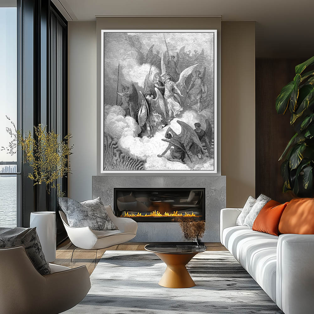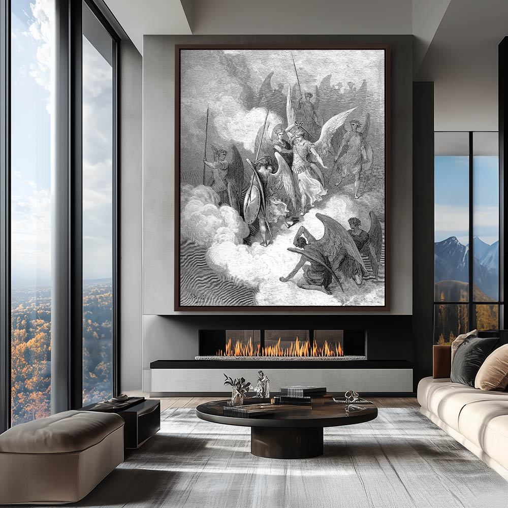 Vintage Etching of Abdiel and Satan