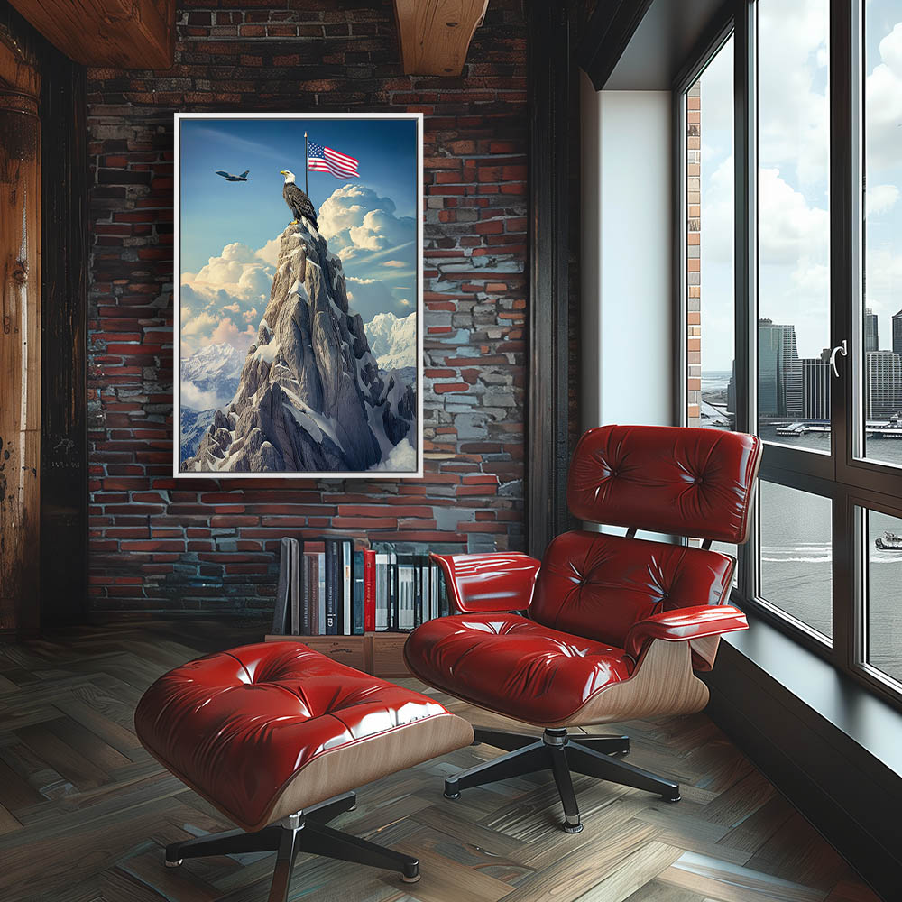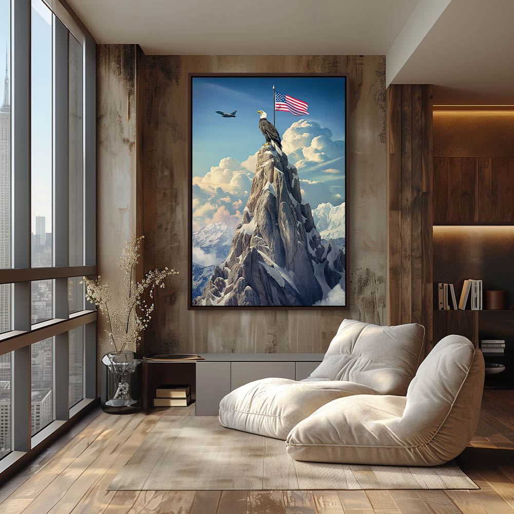 Abstract Painting of a Bald Eagle in Front of the American Flag on Top of a Mountain