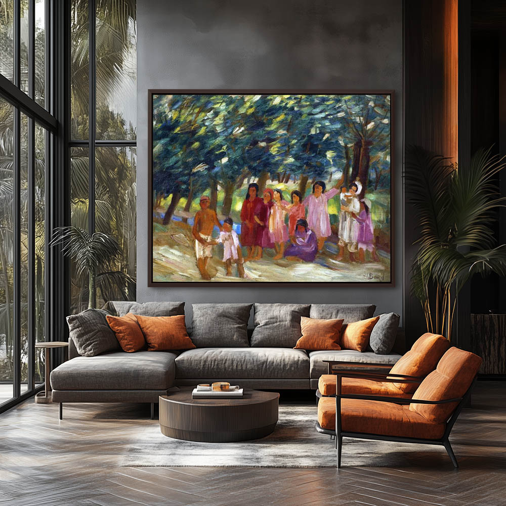 Abstract Painting with Figures in Landscape under Trees