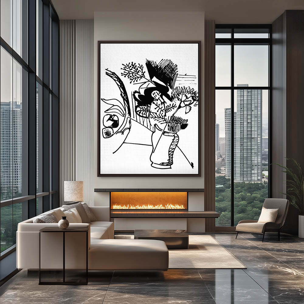 Abstract Still Life with Flowers Drawing