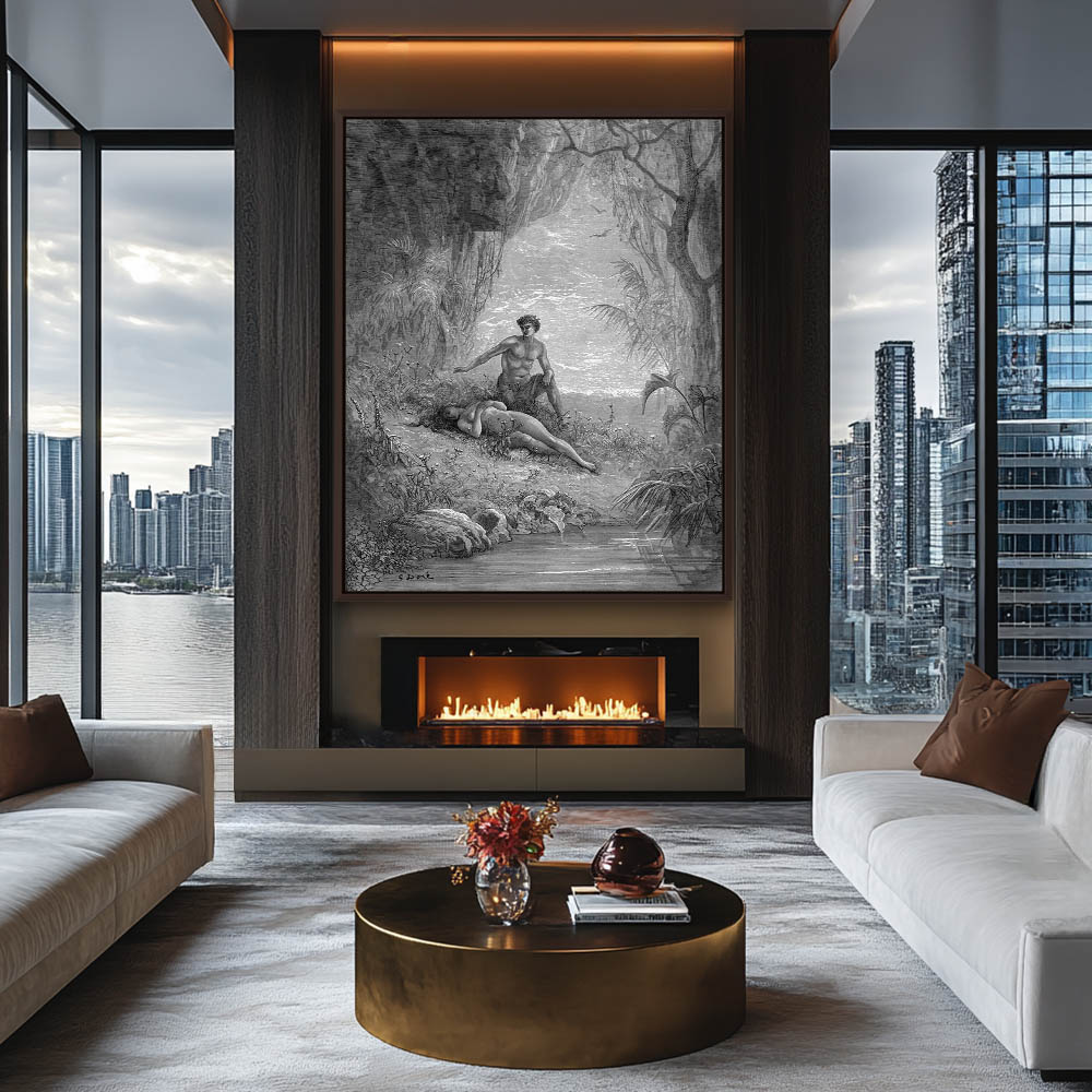 Vintage Etching of Adam and Eve