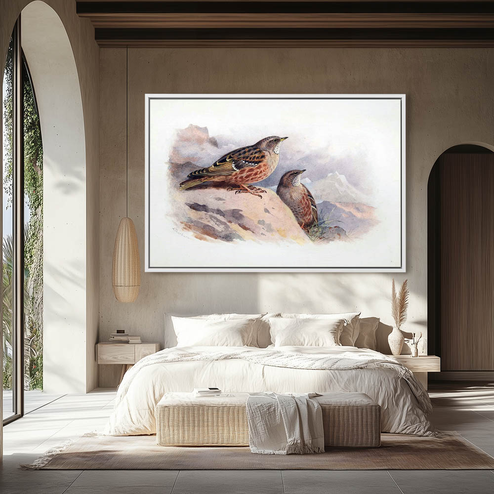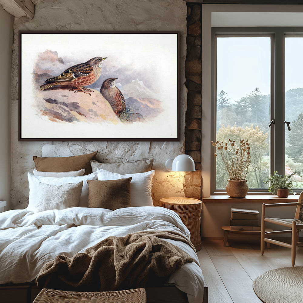 Painting of Alpine Accentor Resting on the Rocks of a Mountainous Landscape