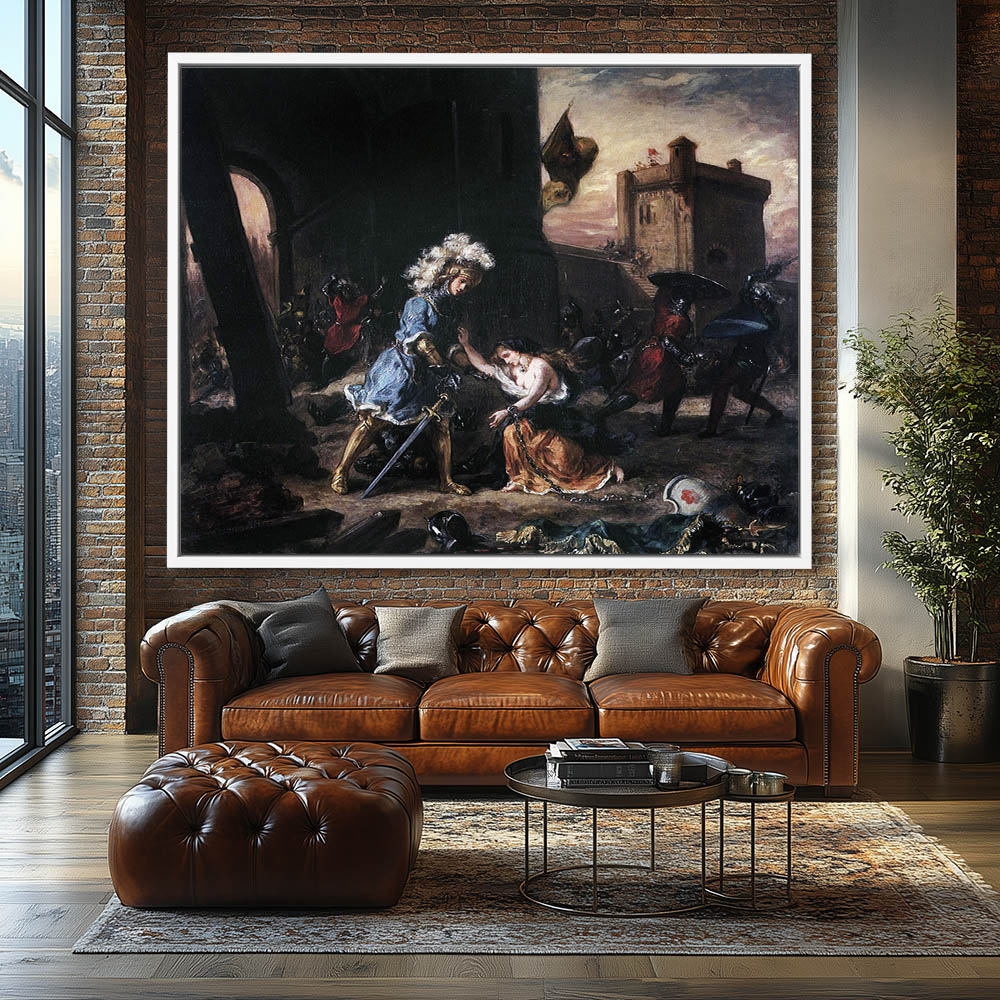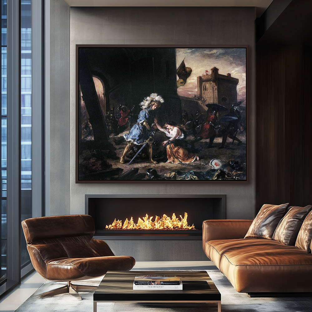 Vintage Figurative Painting of Amadis Delivering Princess Olga from the Galpans Castle