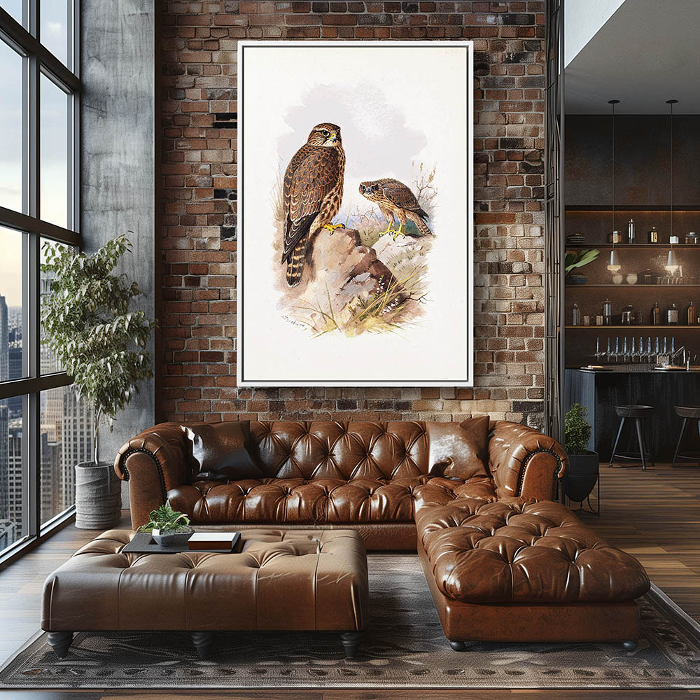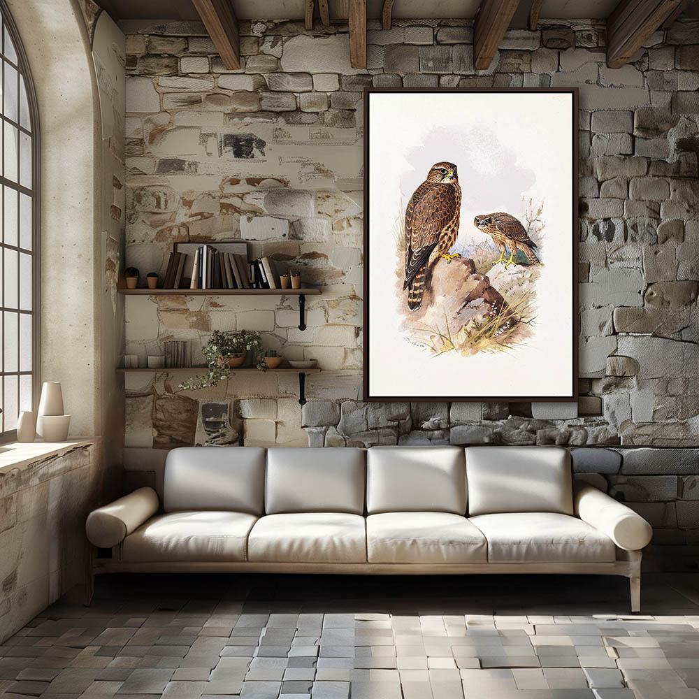Painting of a Merlin Birds of Prey Perched on a Rock