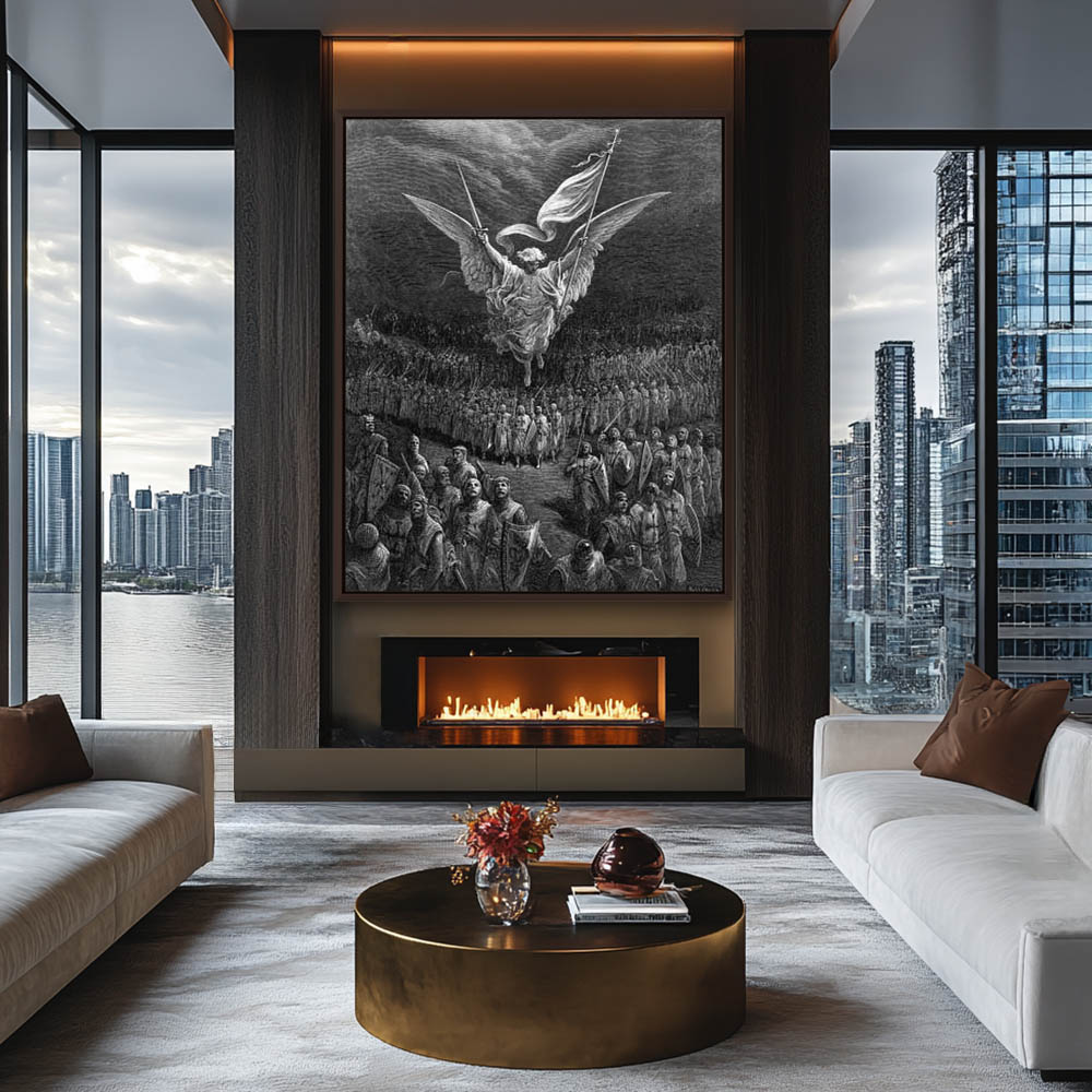 Vintage Etching of An angel leading the Crusaders to Jerusalem