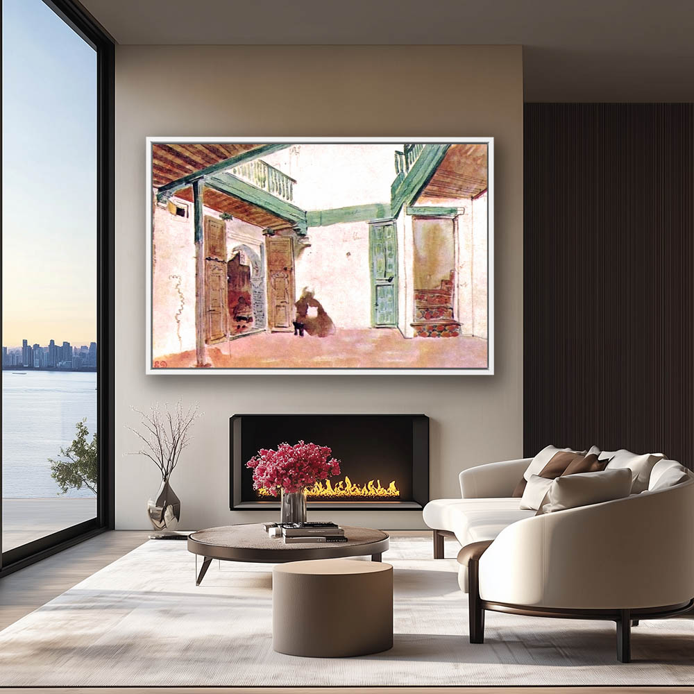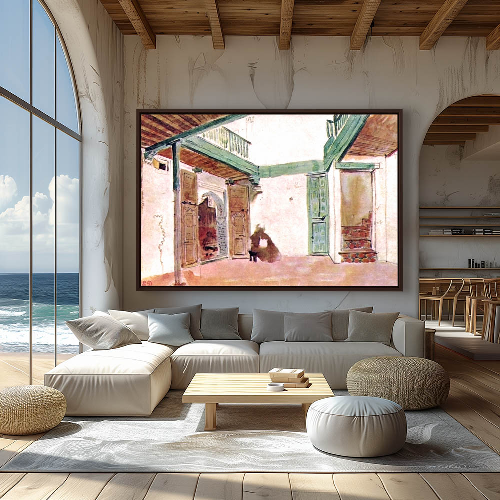 Vintage Interior Painting of a Room in Morocco