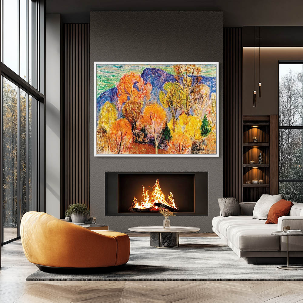 Abstract Landscape Painting with Trees in Autumn Colors