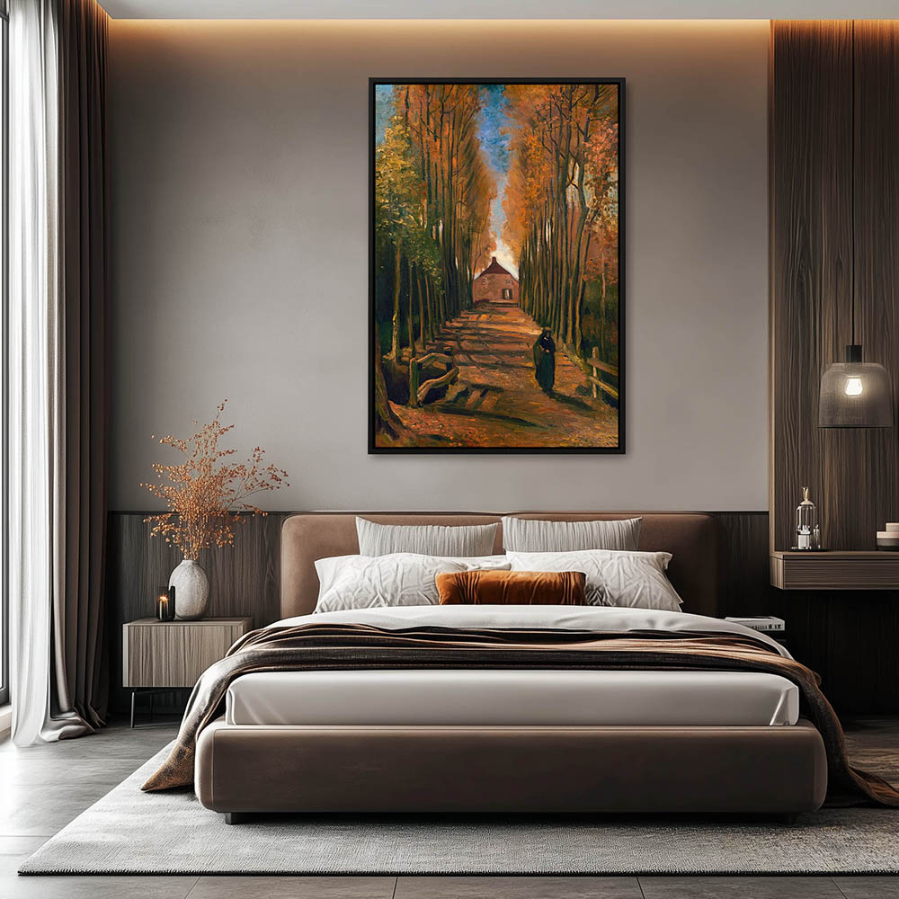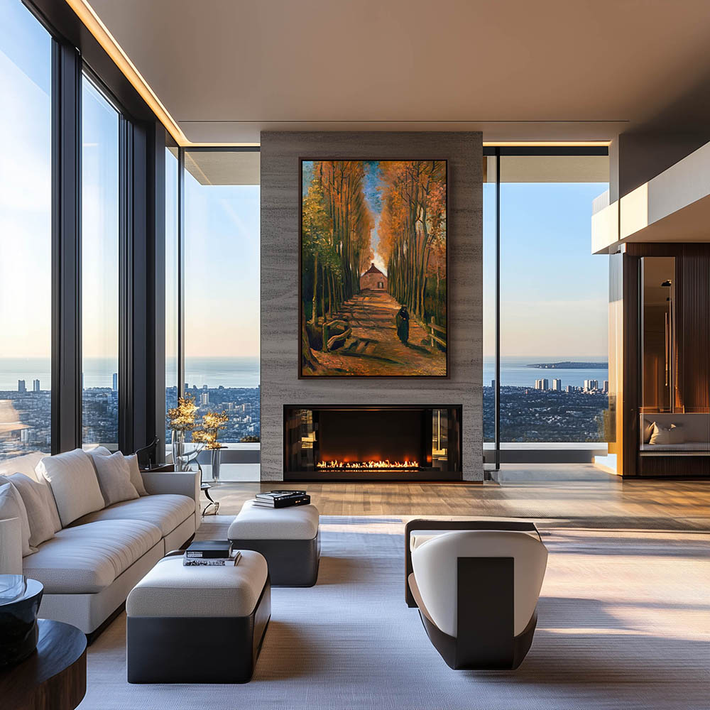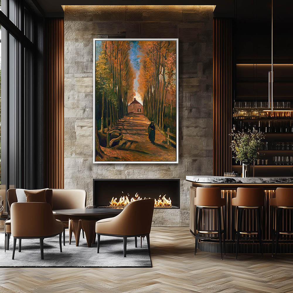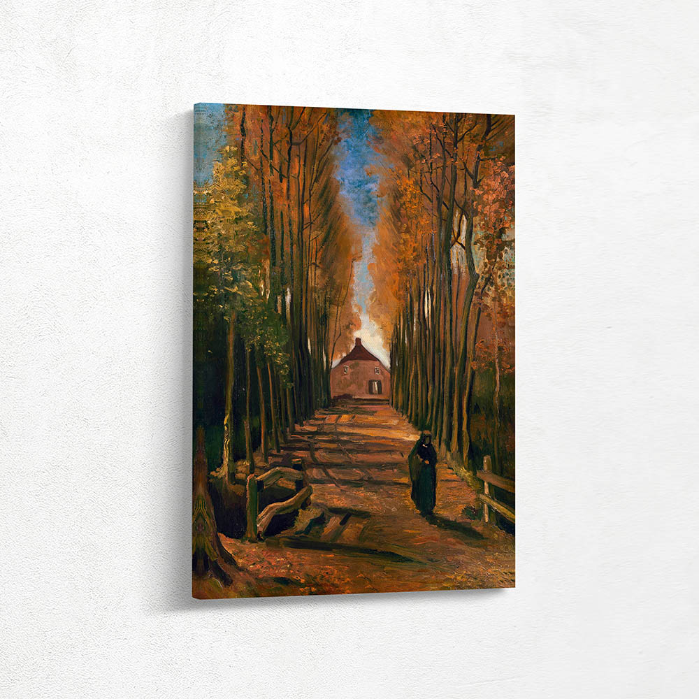 Impressionist Landscape Painting with a Figure Walking a Path in the Trees in Autumn