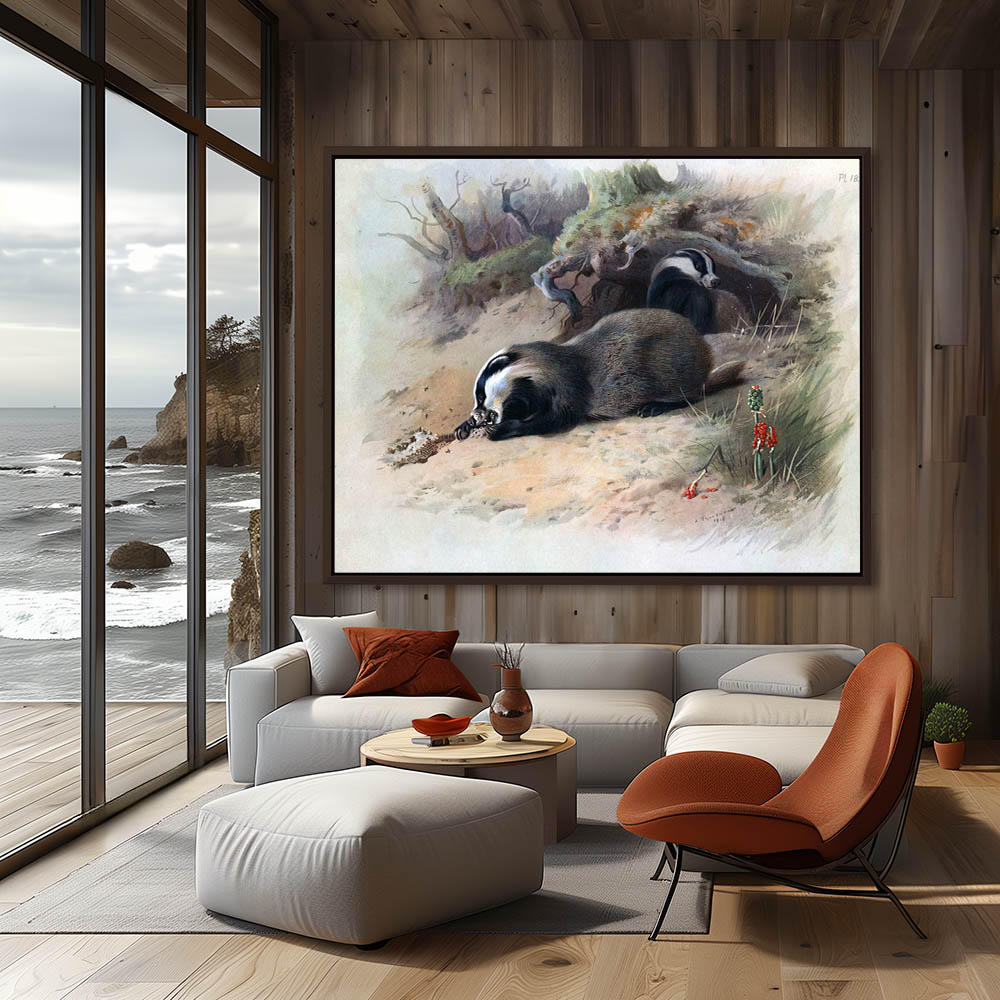Painting of a Badger Eating a Snake