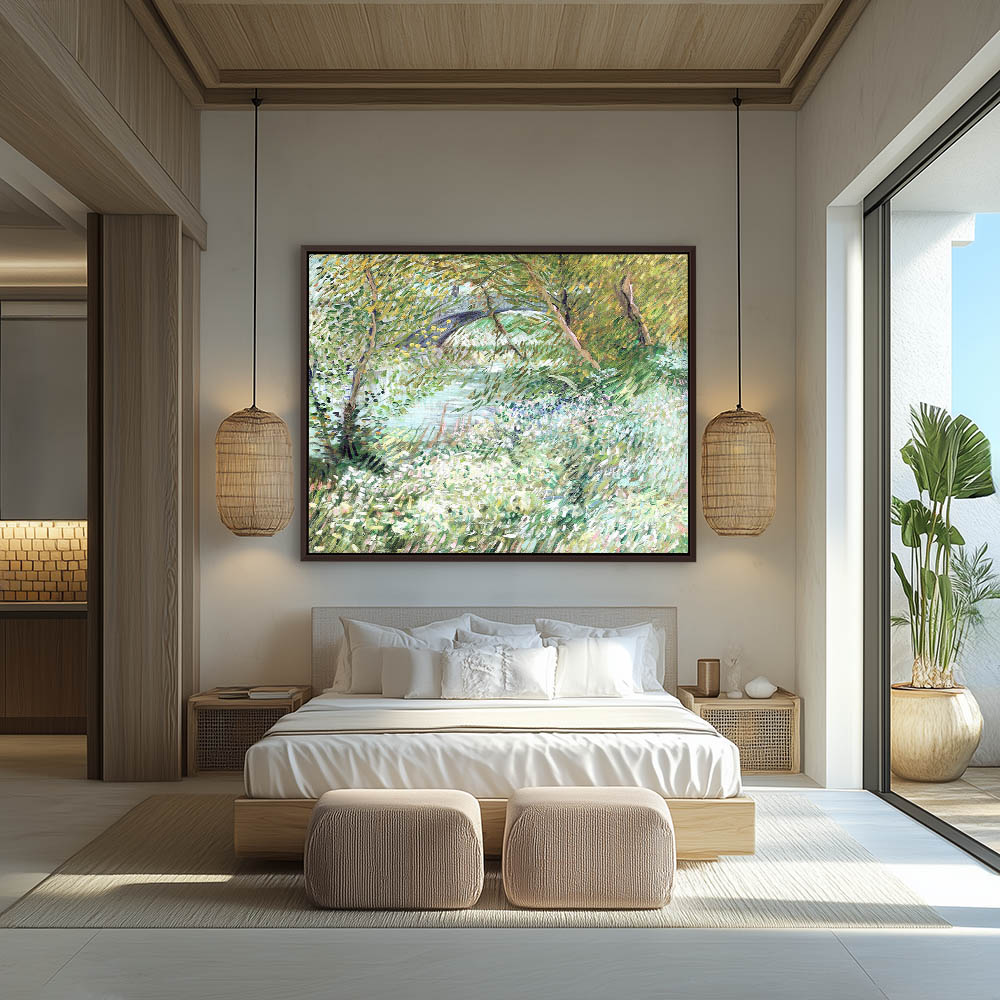 Impressionist Landscape Painting of a River Bank in Spring
