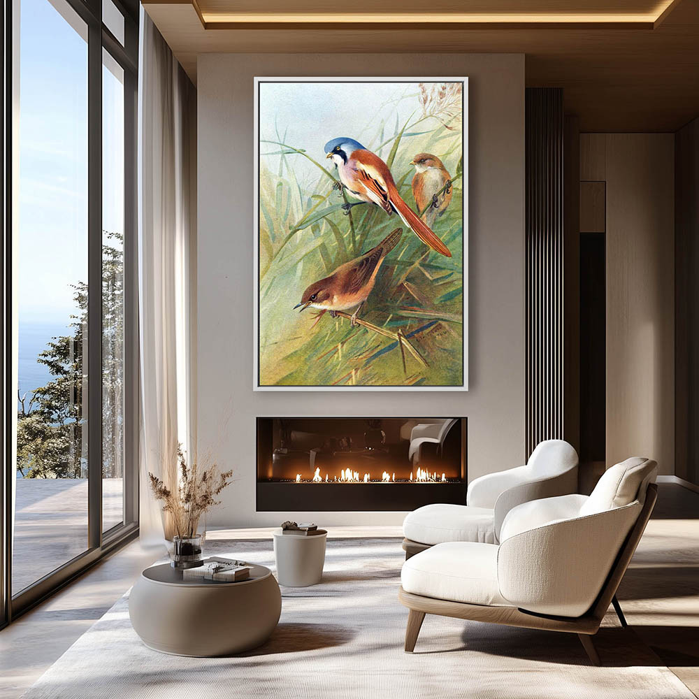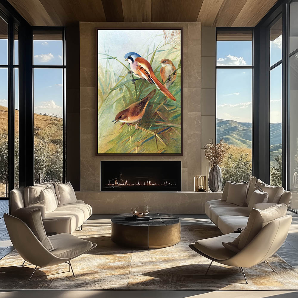 Painting of Birds Resting on Grass Stems
