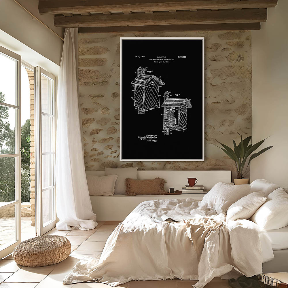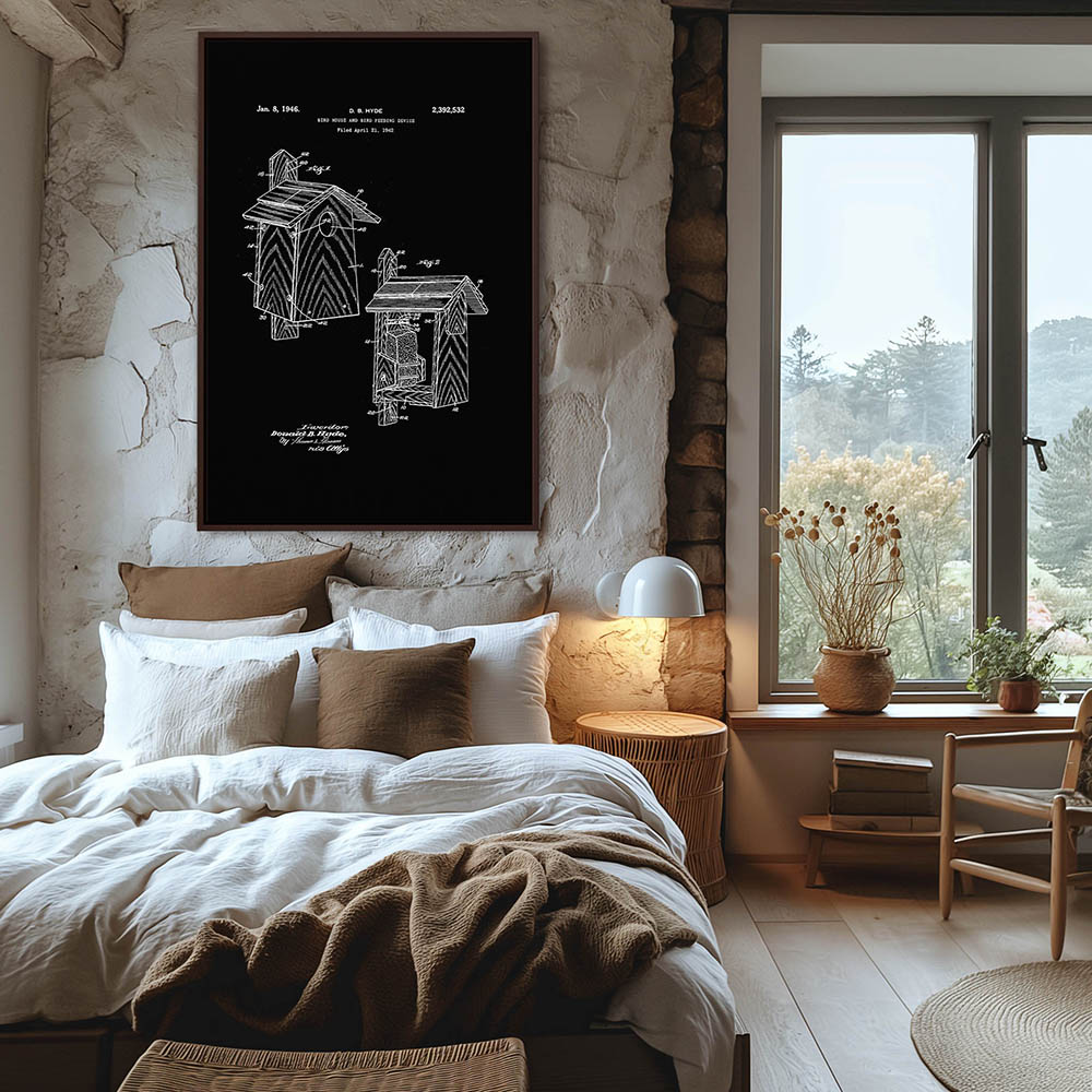 Illustration of a Bird House and Bird Feeding Device