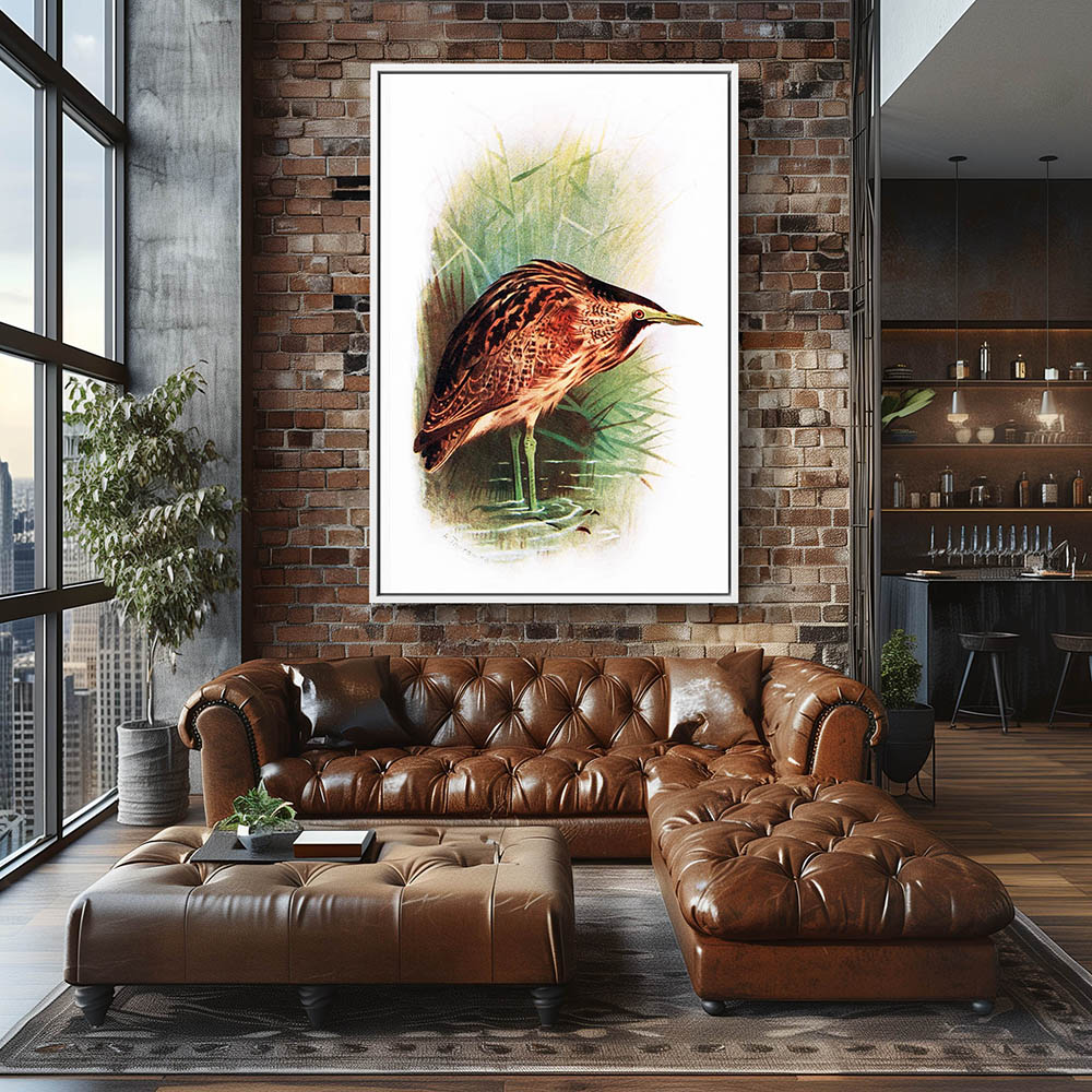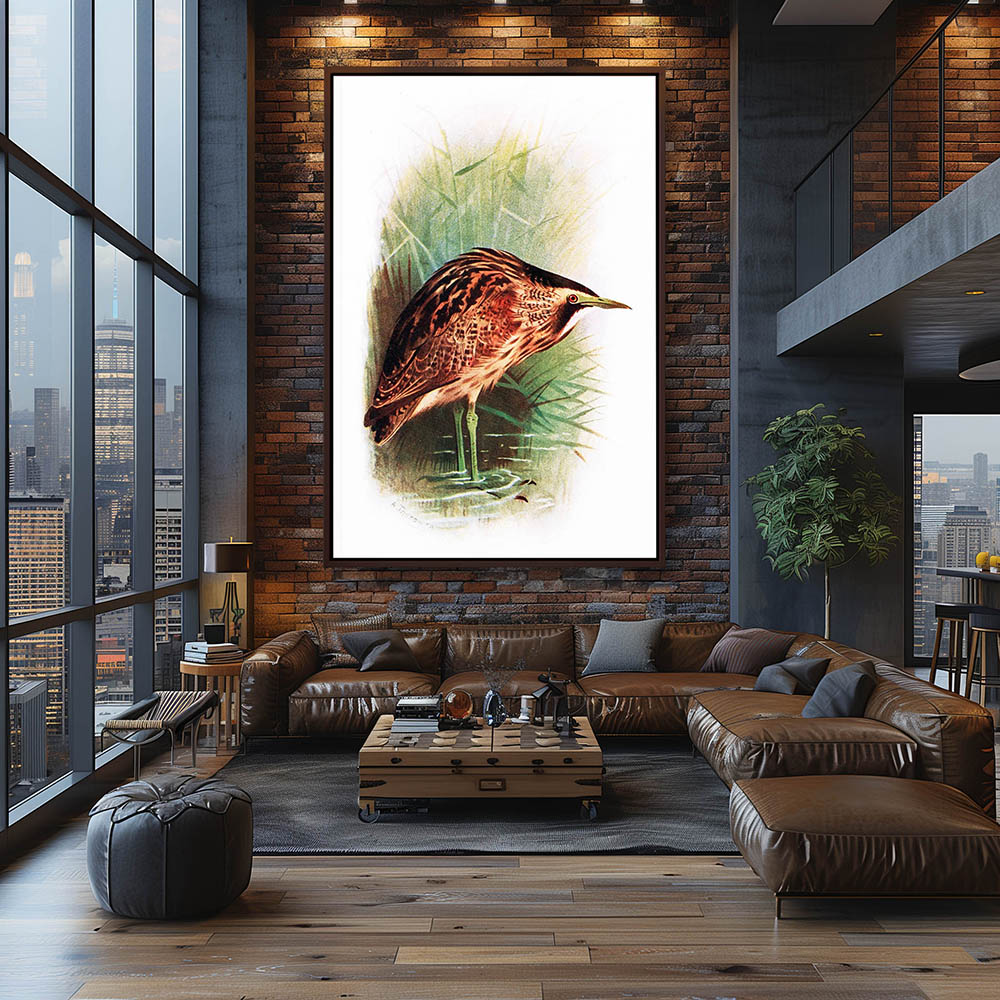 Painting of a Bird Wadding in the Shallows next to the Reeds