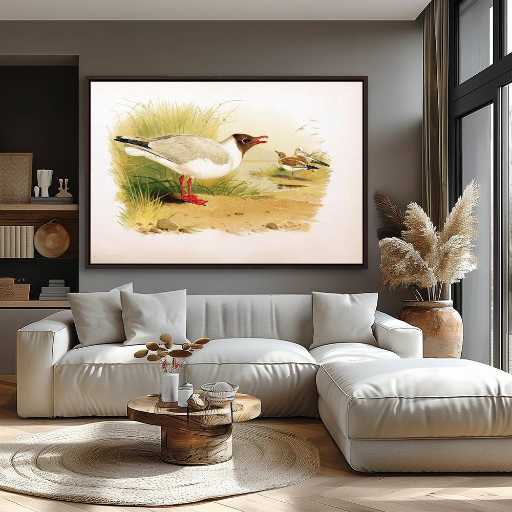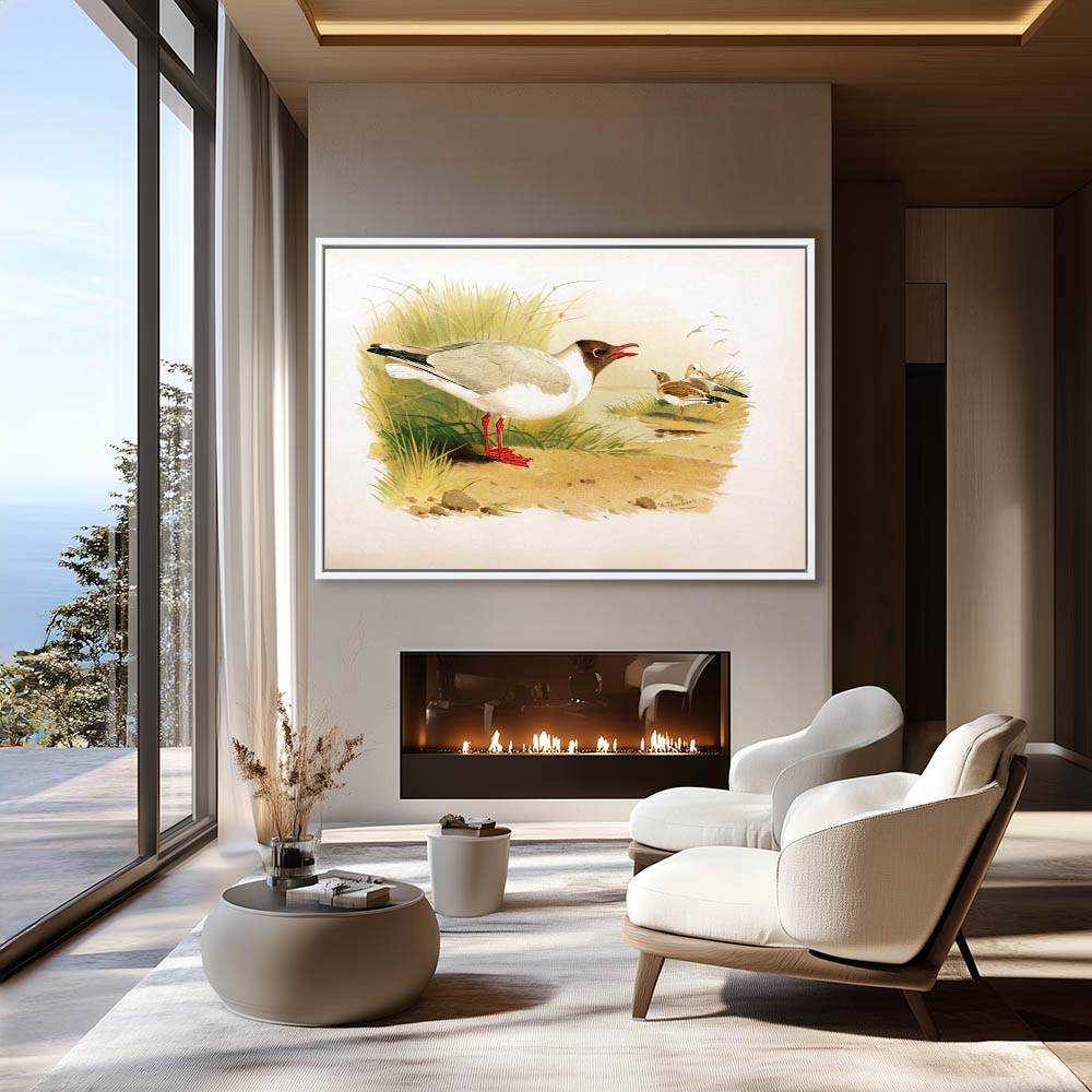Painting of the Black Headed Gulls on the Edge of the Water near the Grass