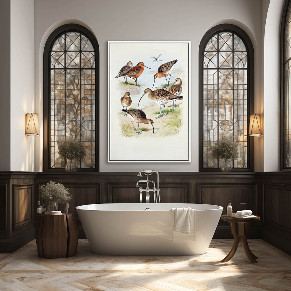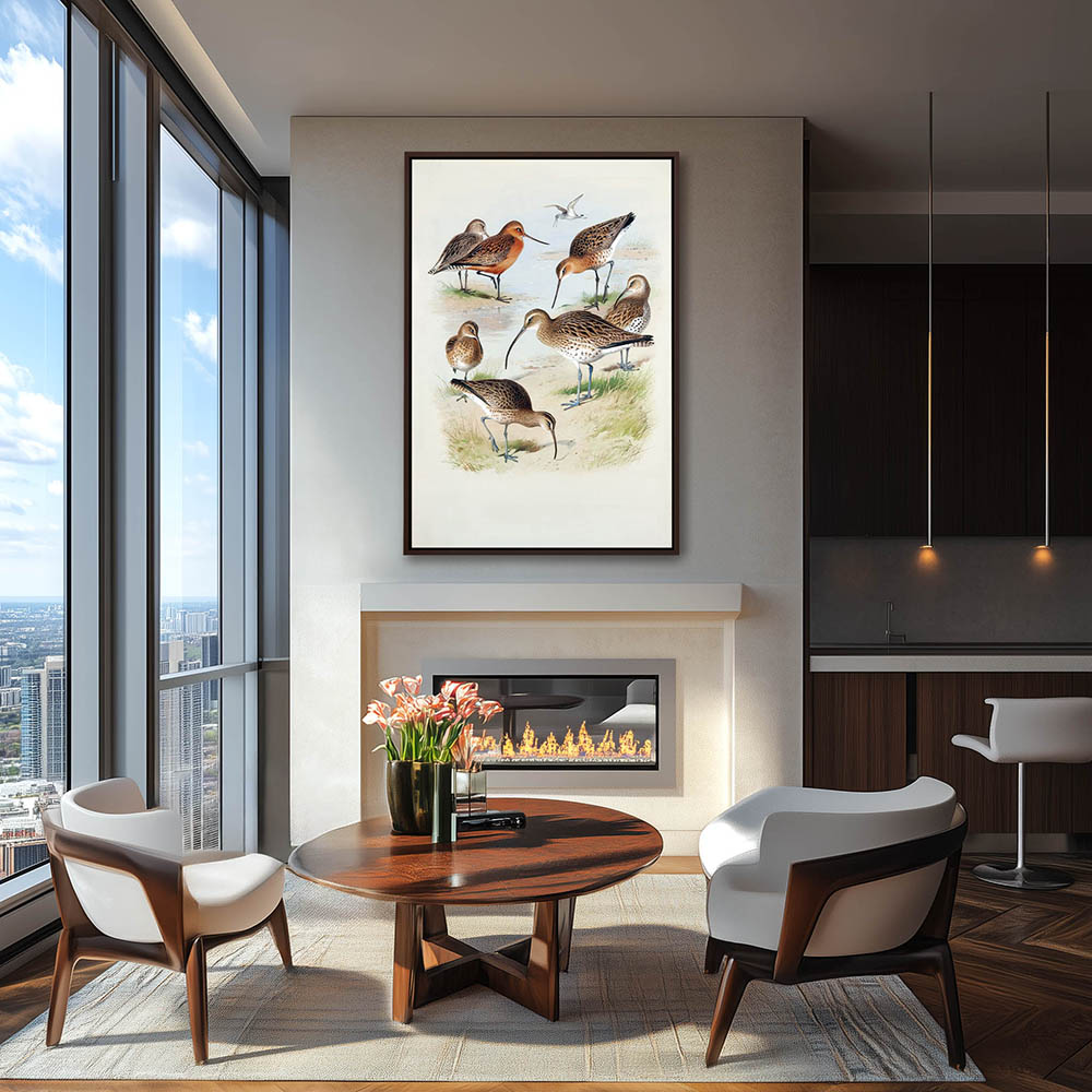 Painting of Black Tailed Godwits and Curlews in Various Settings