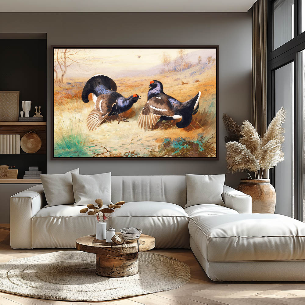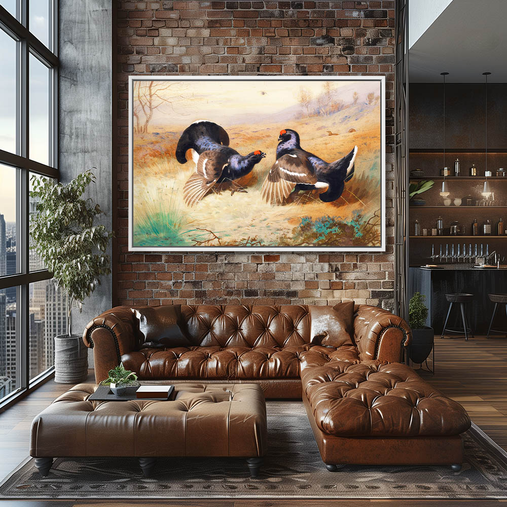 Open Landscape Painting with Blackcocks Staging for the Hens