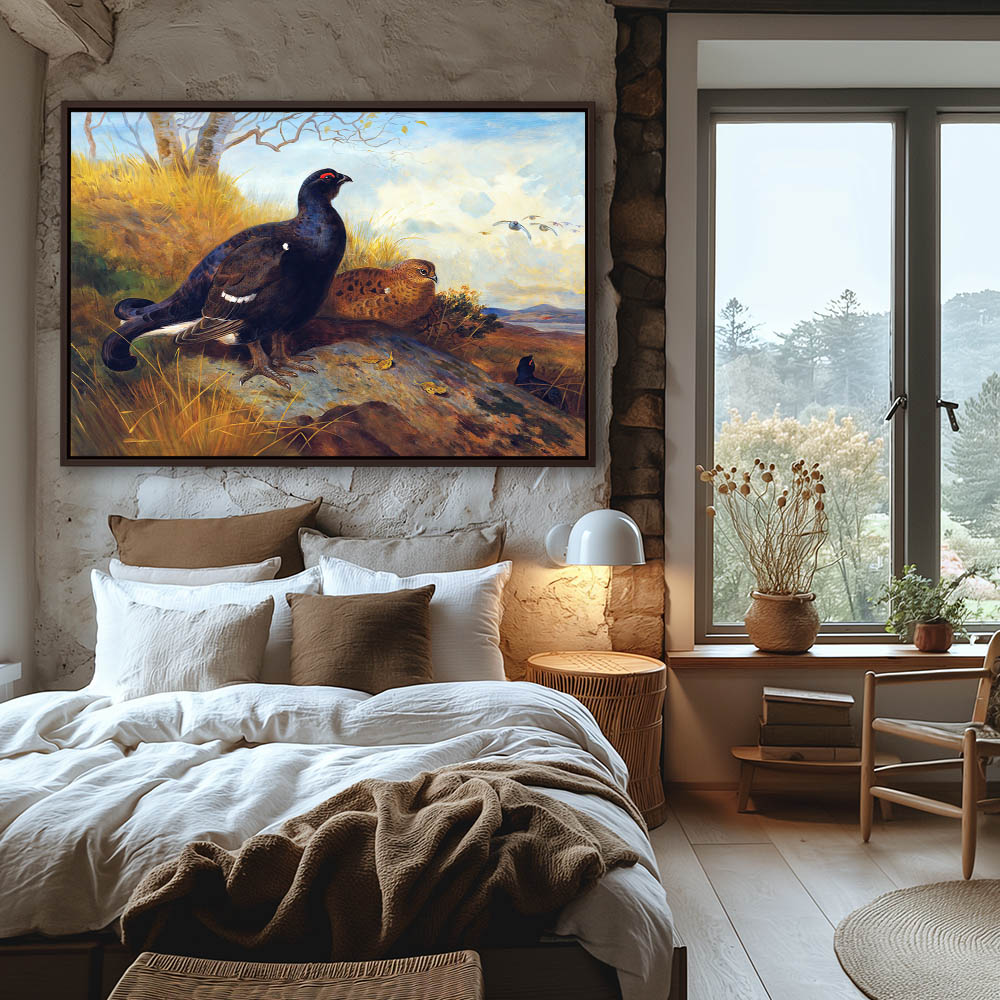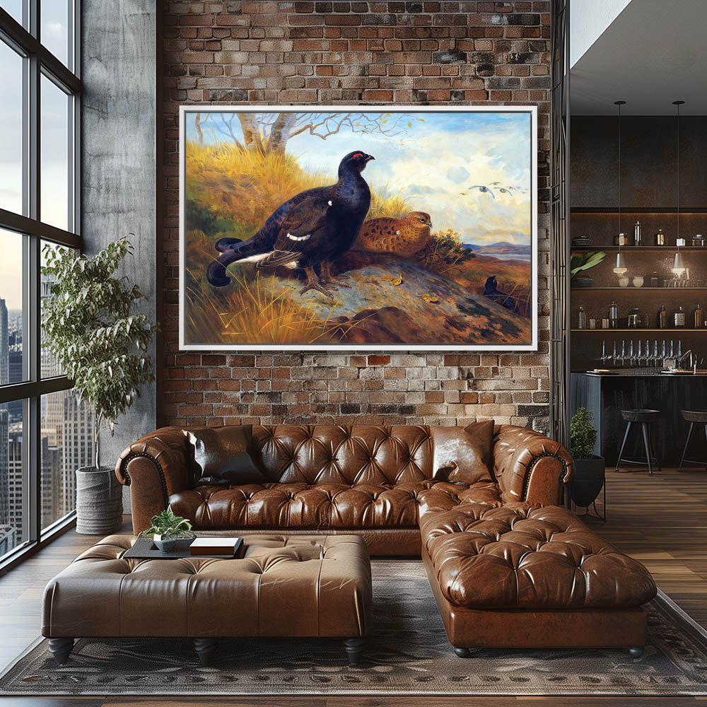 Blackgame on a Rocky Outcrop with a Loch Beyond