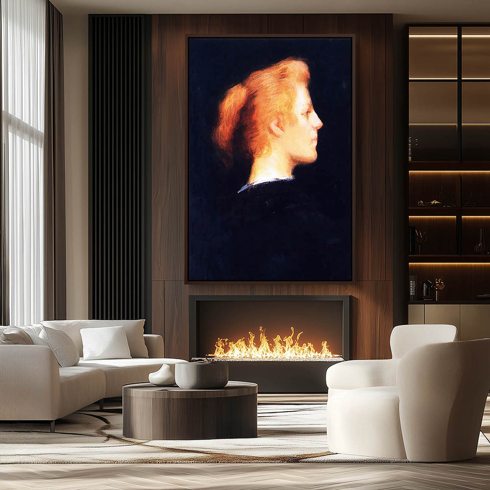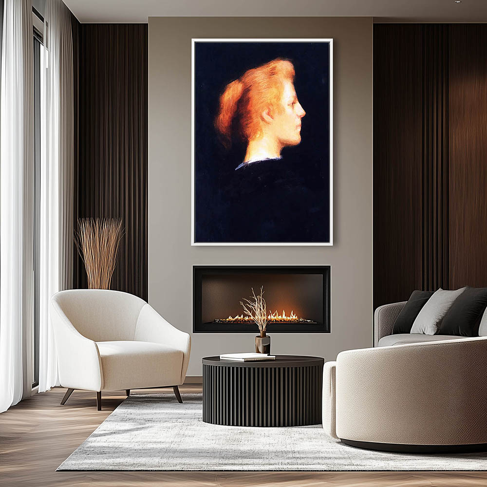 Portrait Painting of a Blonde Woman in Profile on Black Background