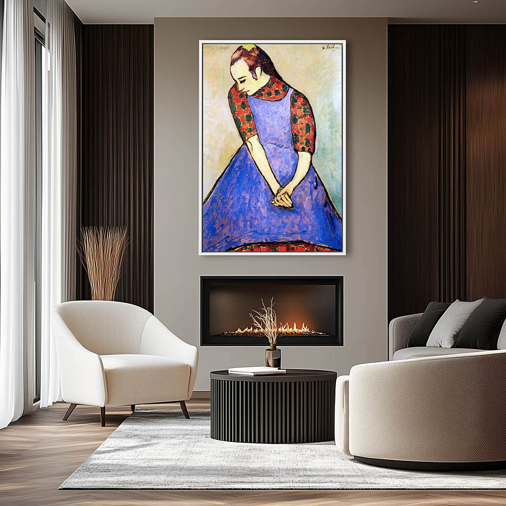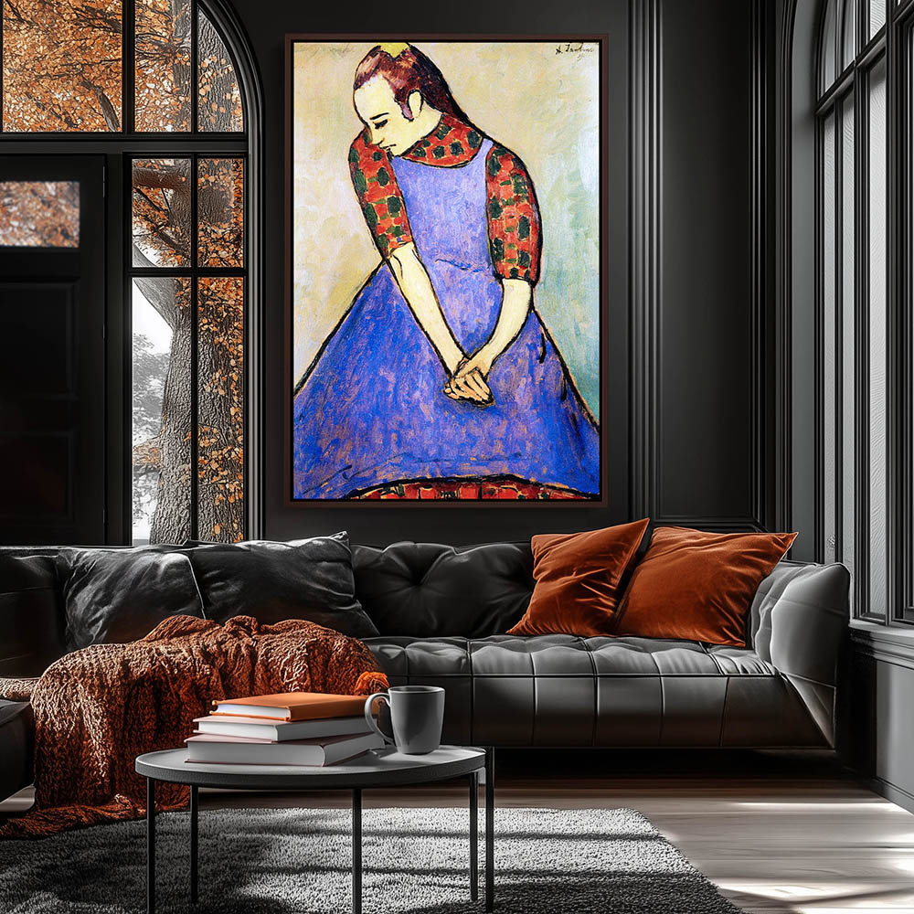 Abstract Figurative Portrait Painting Woman Wearing a Blue Apron
