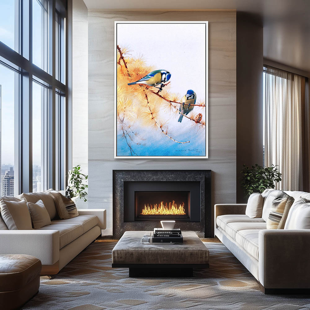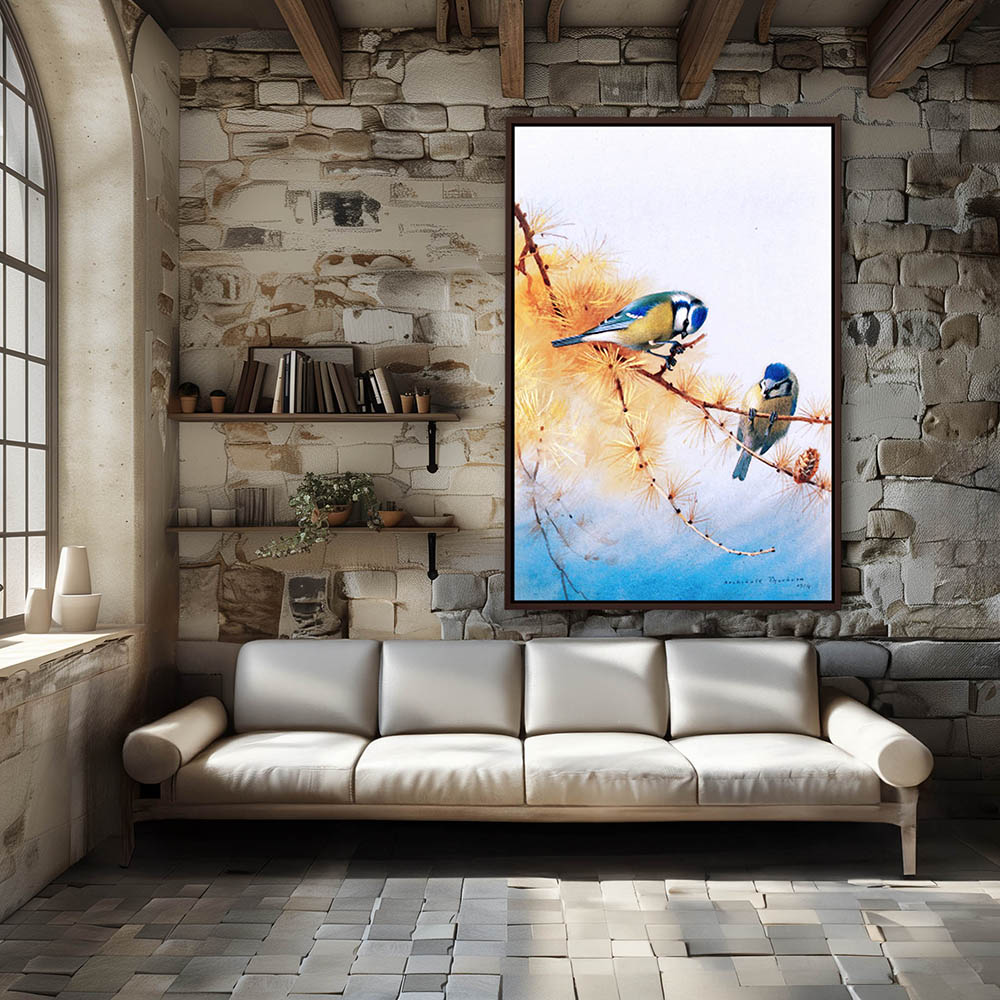 Painting of Blue Tits on a Limb
