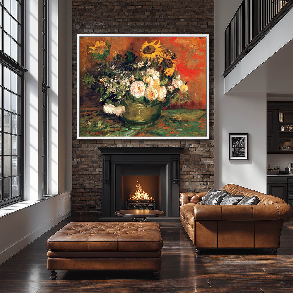 Bowl with Sunflowers Roses and Other Flowers