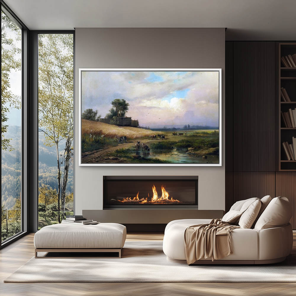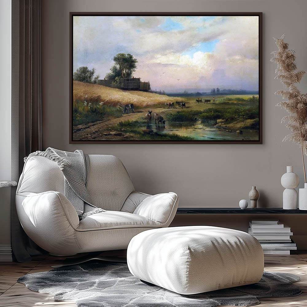 Cattle Watering in a Summer Landscape