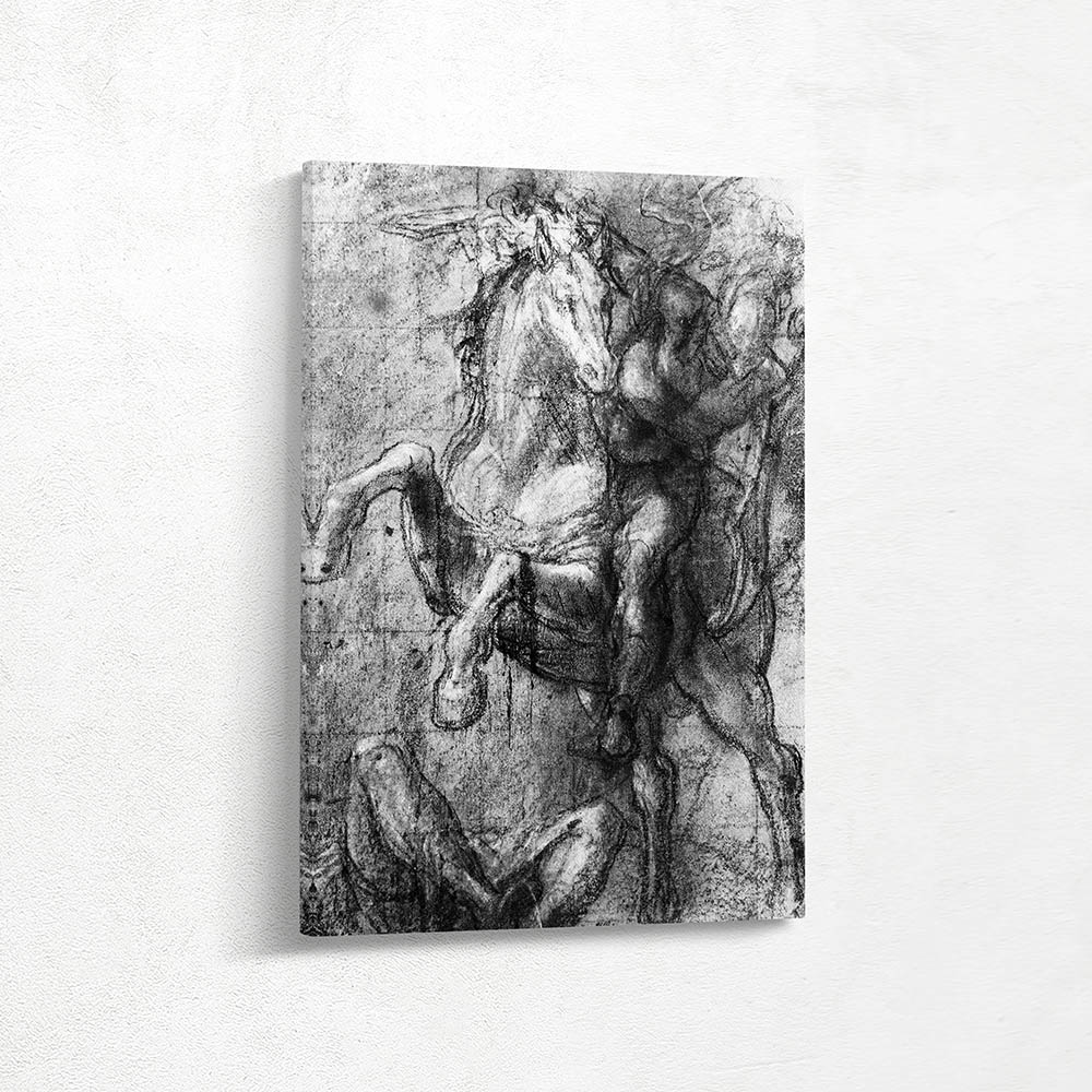 Vintage Figurative Drawing with a Horse and Rider