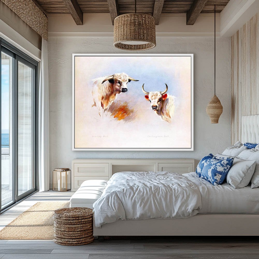 Painting of Two White Bull Heads