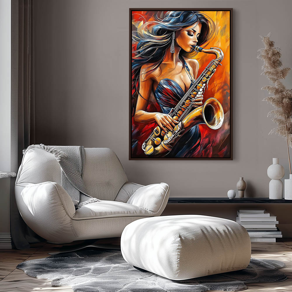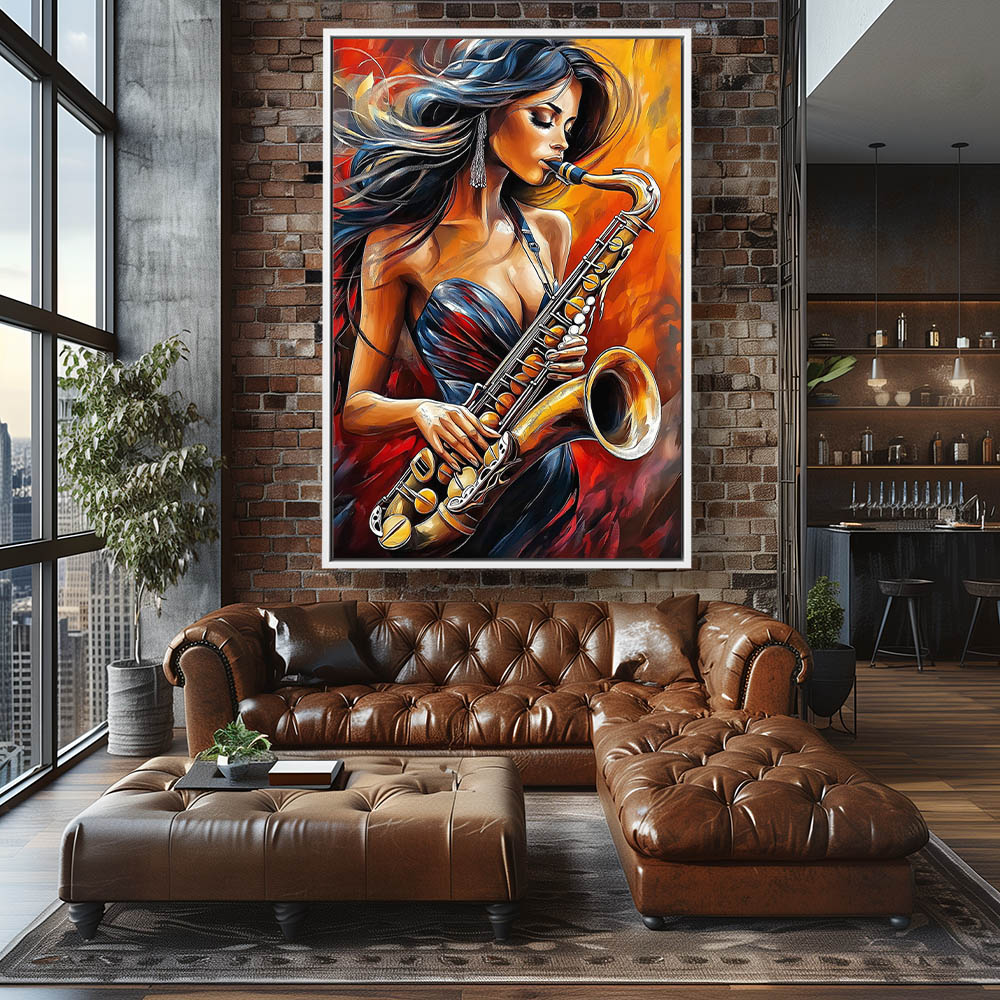 Abstract Painting of a Beautiful Woman Playing a Saxophone