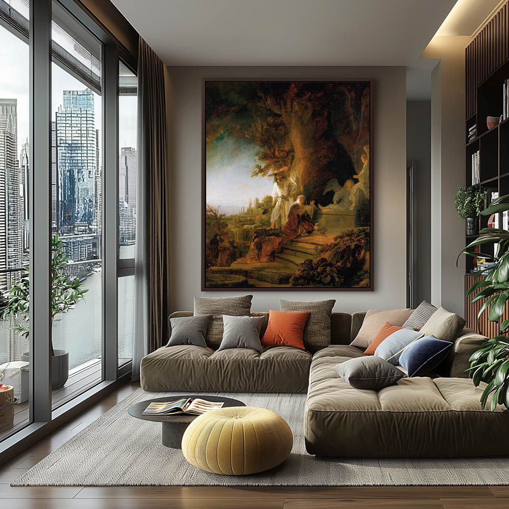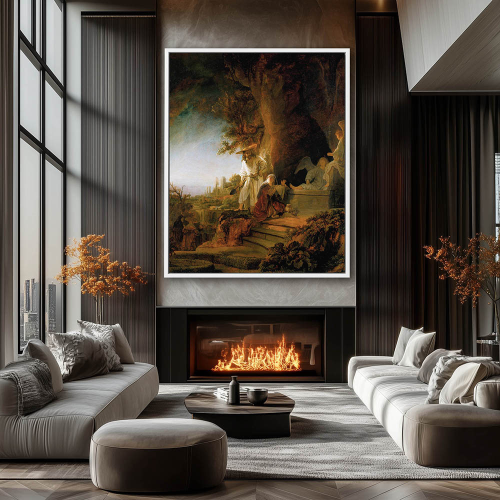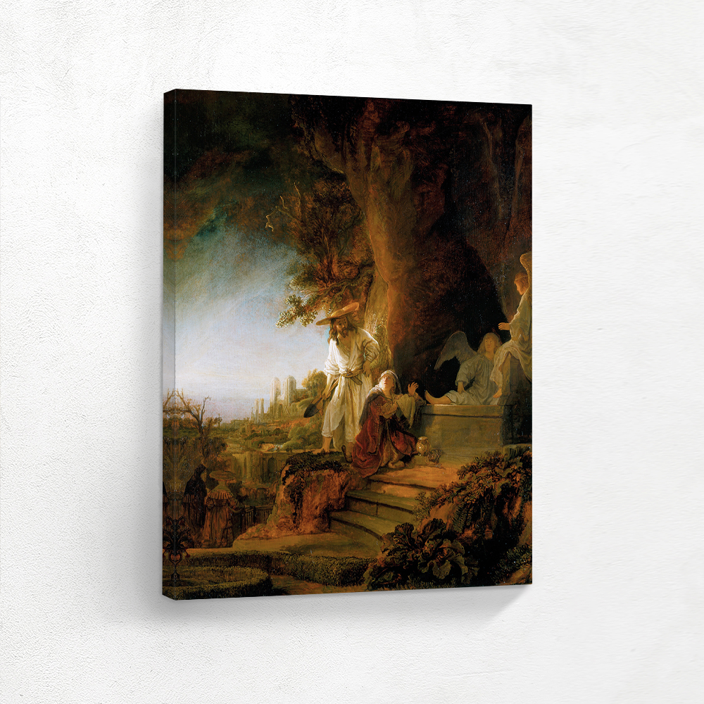 Realism Vintage Painting of a Biblical Stor with Jesus Christ Angels and Mary Mag