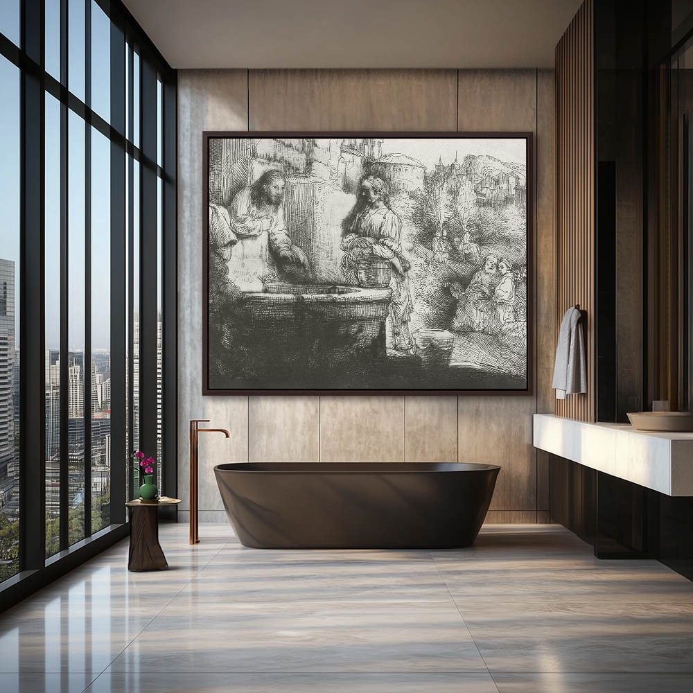 Religious Drawing with Jesus Christ talking to the Woman at the Well