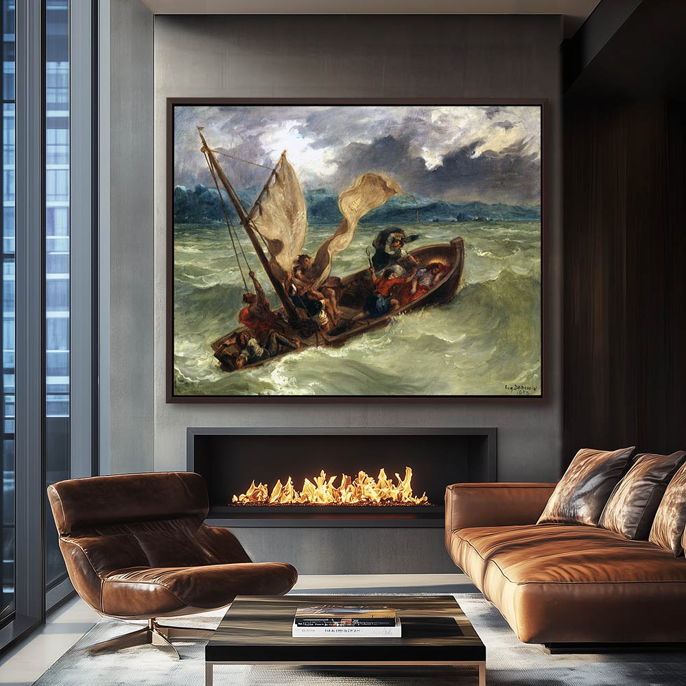 Vintage Religious Painting of Jesus Christ on the Sea of Galilee