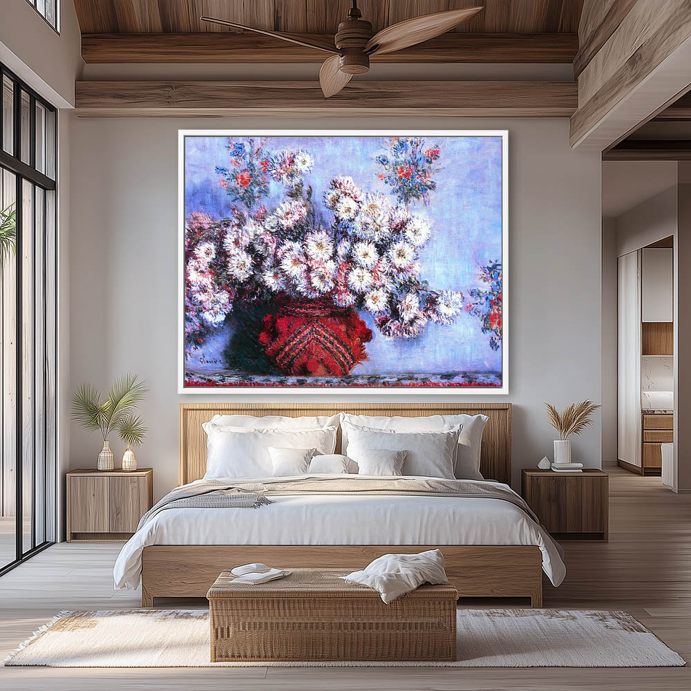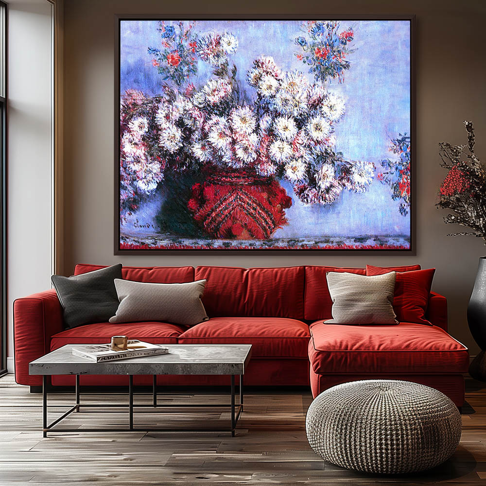 Vintage Still Life Painting of a Vase of Chrysanthemums