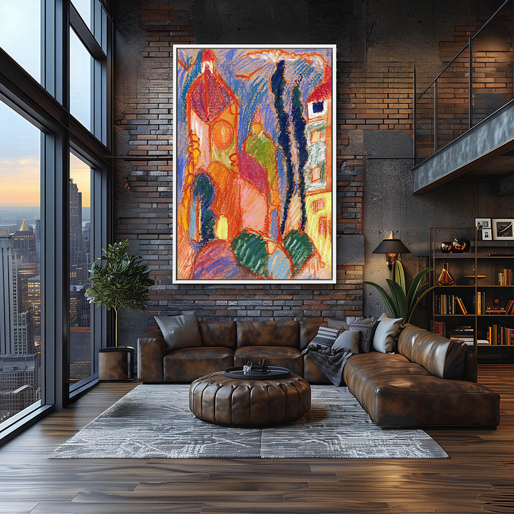 Abstract Pastel Landscape Painting of a City View