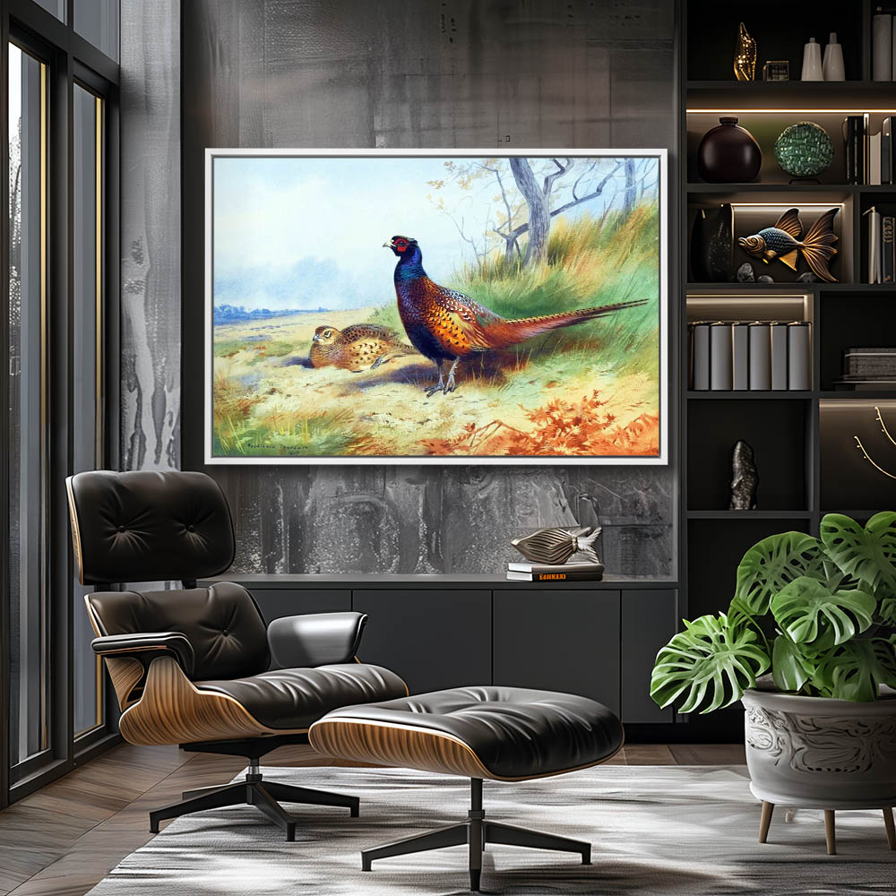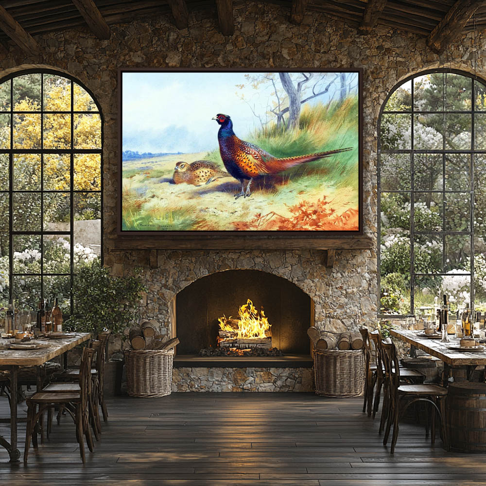 Painting of an Open Landscape with Pheasants