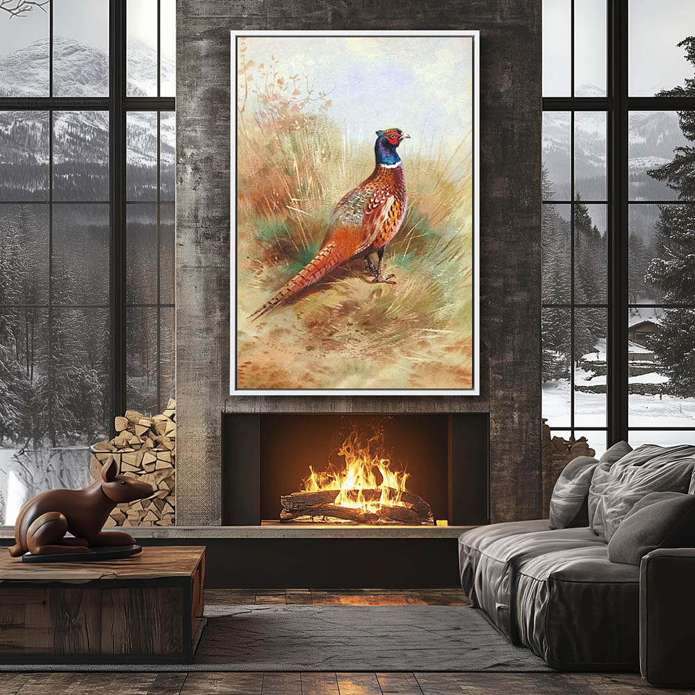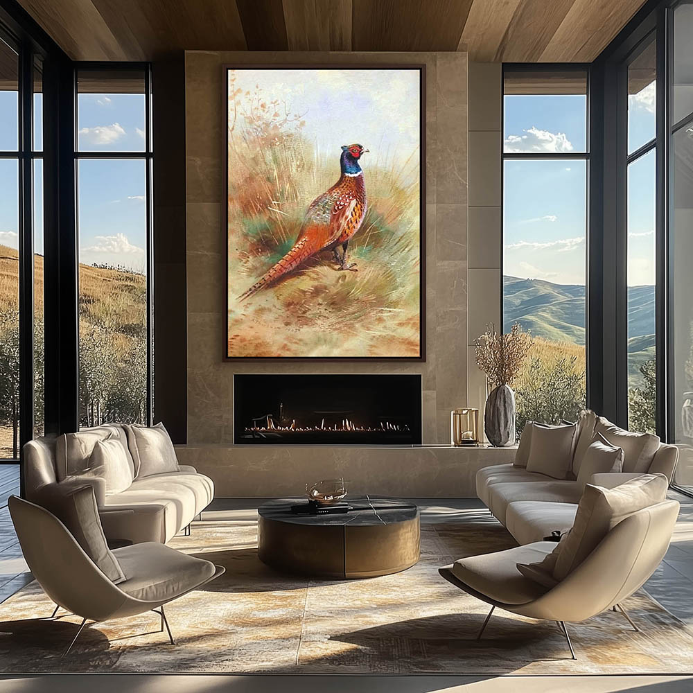 Painting of a Pheasant in the Grass