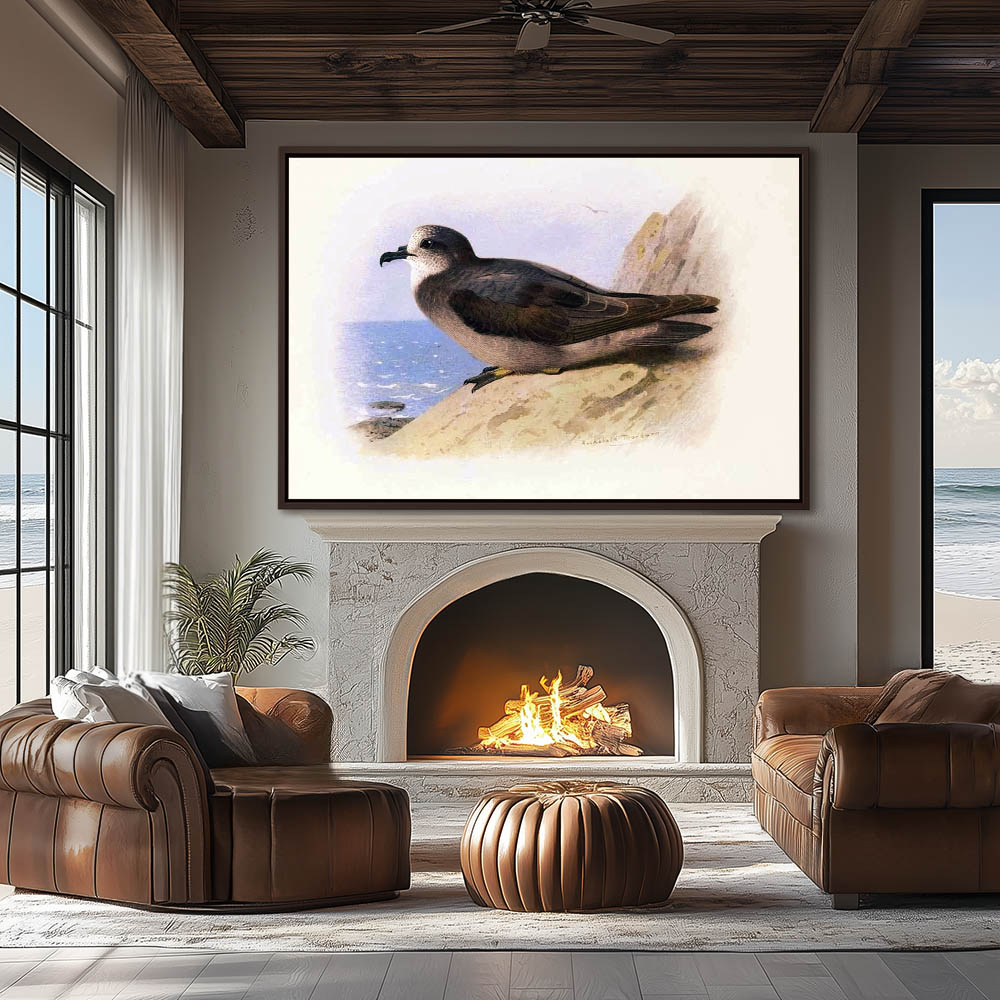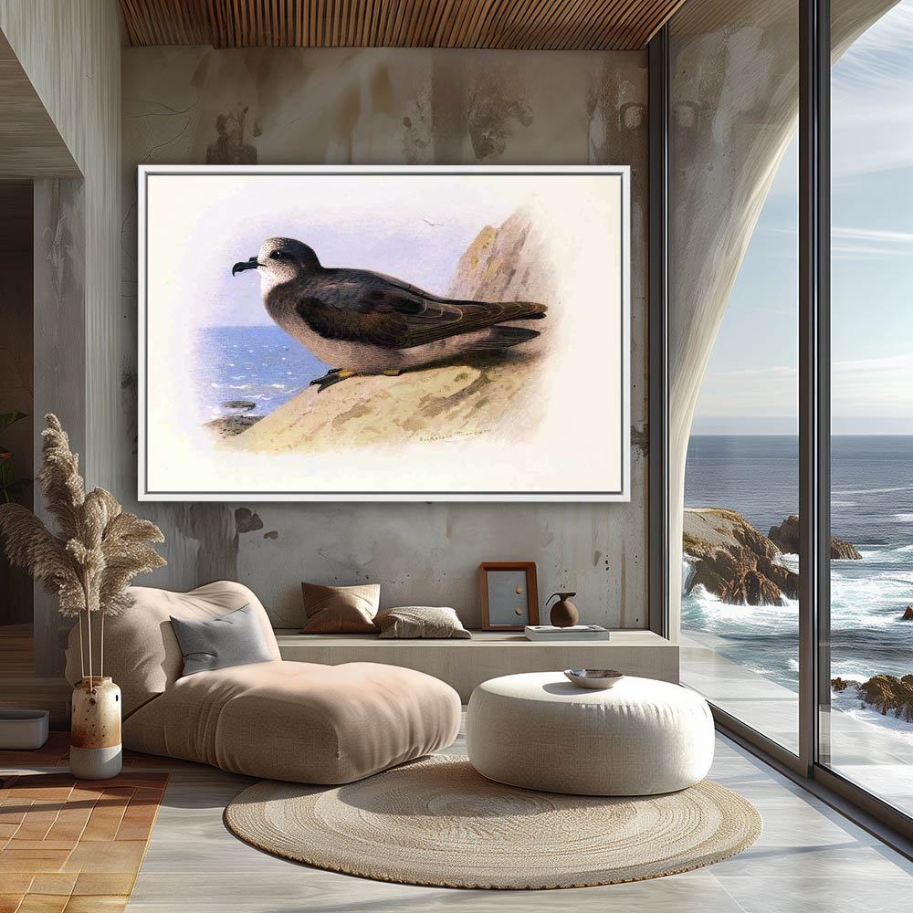 Painting of the Collared Petrel Bird on a Rock Cliff on the Sea Shore