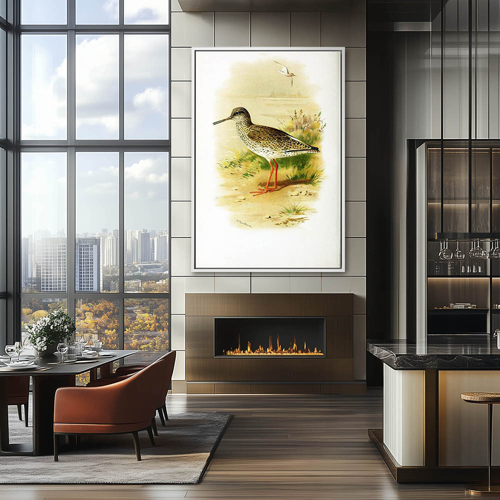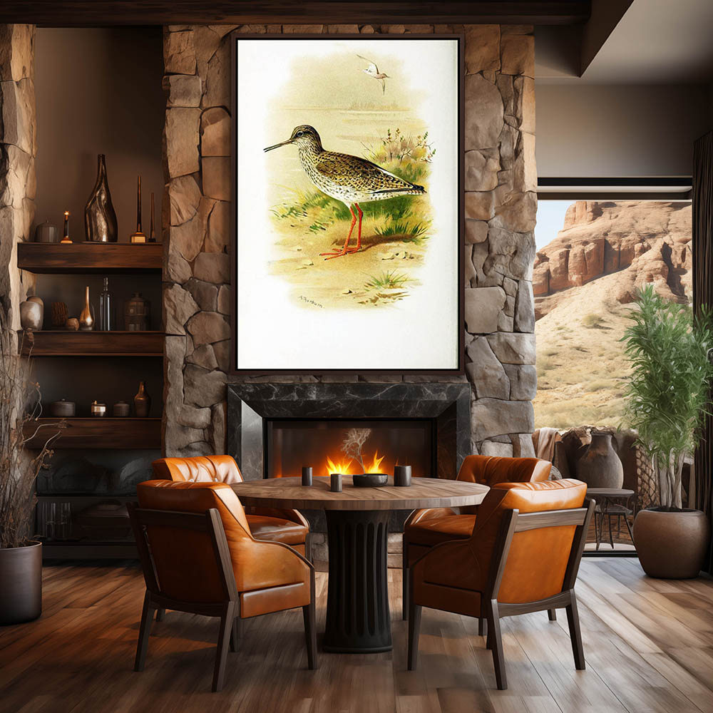 Painting of a Common Redshank in the Grass on Shore