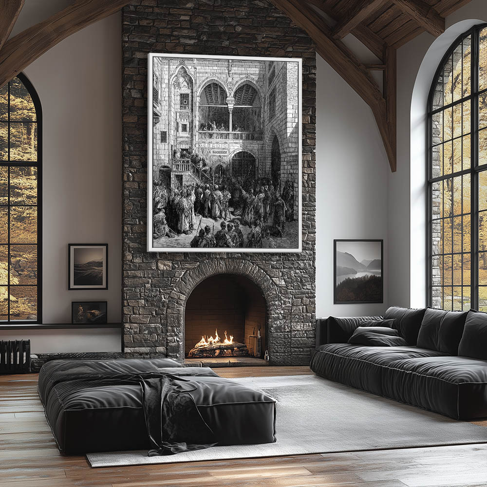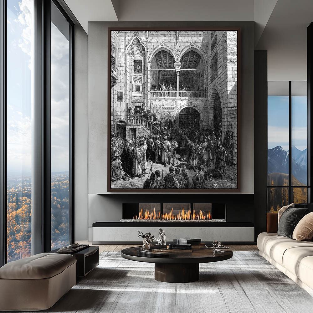 Vintage Etching of Constantine Palaeologus Haranguing the Defenders of Constantinople