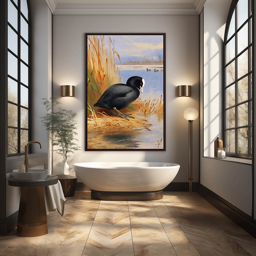 Painting of a Duck on the Shore in the Reeds