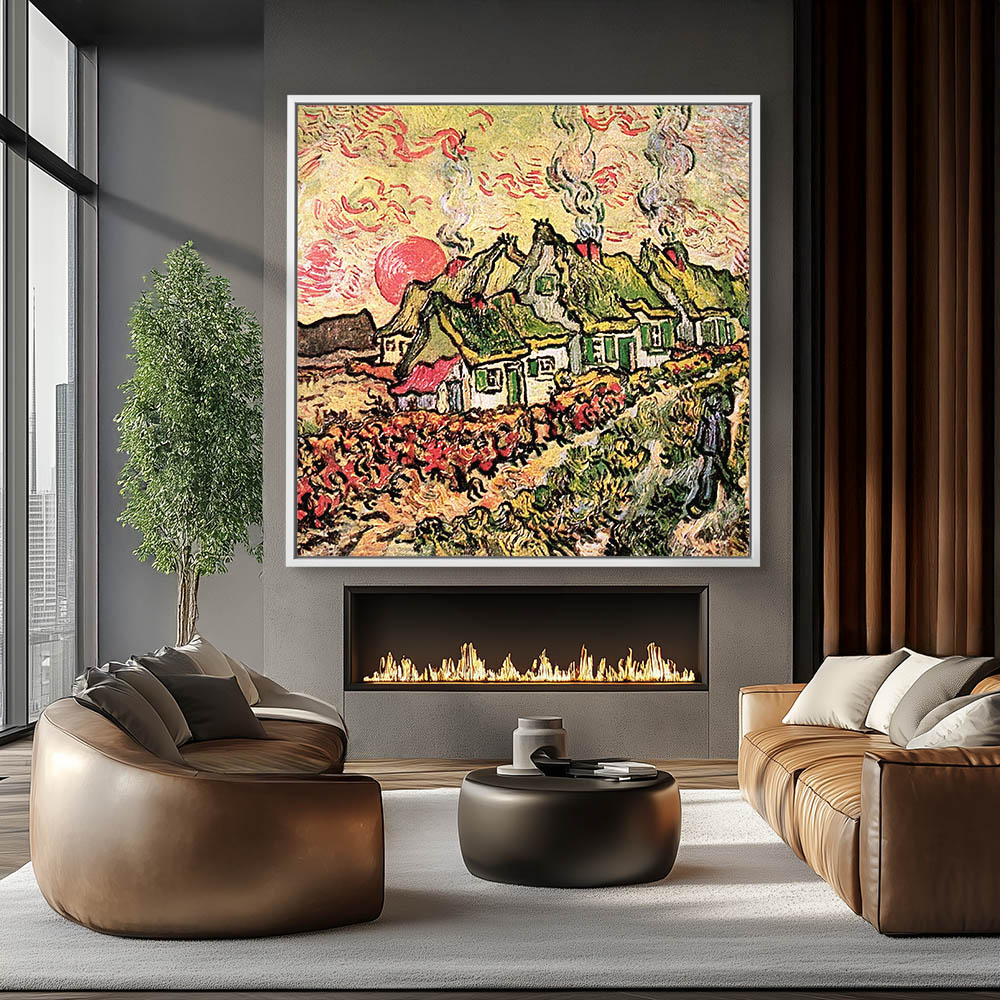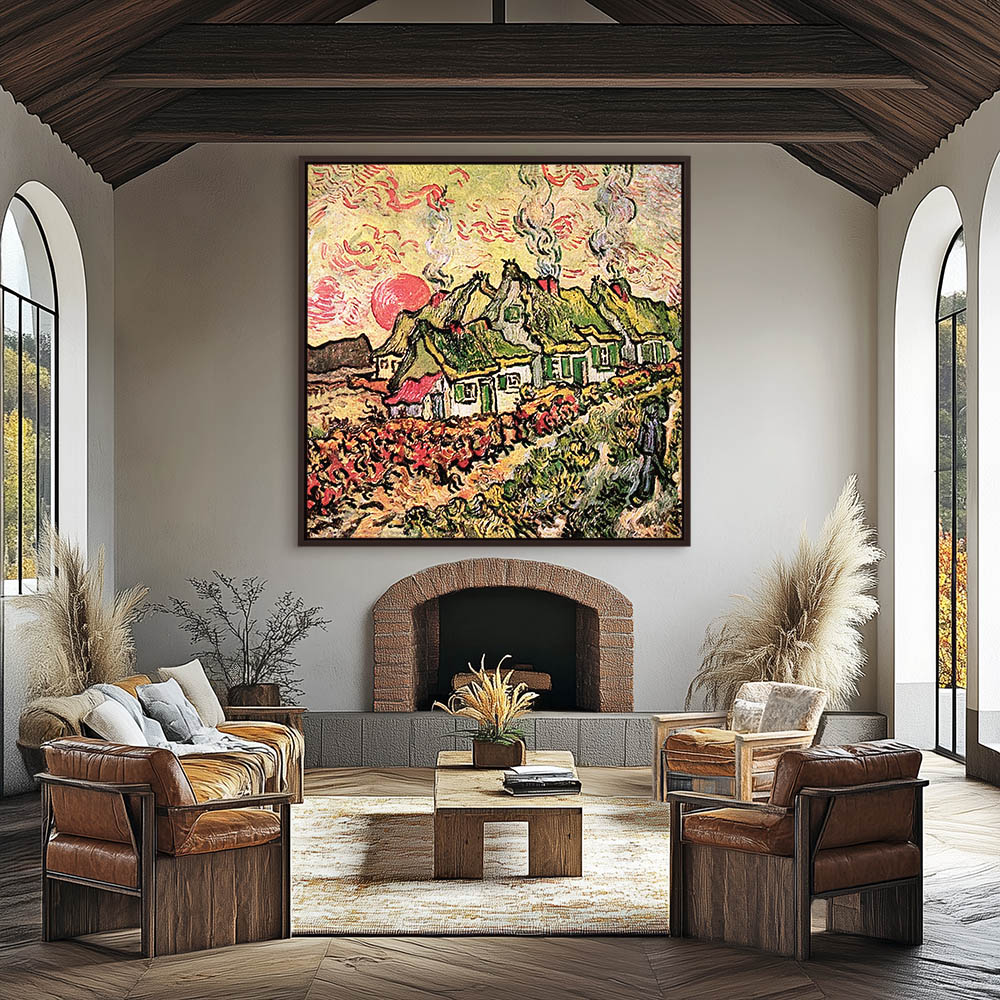 Impressionist Abstract Landscape Painting with Cottages