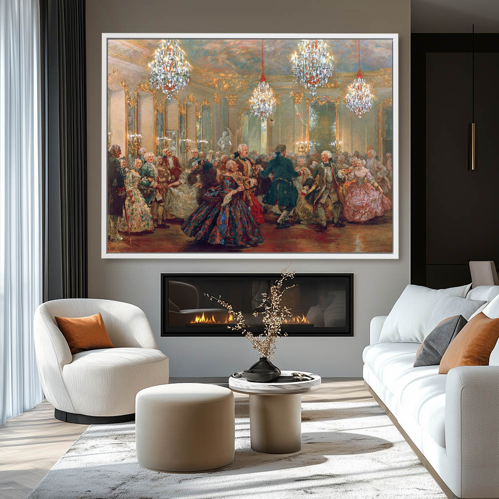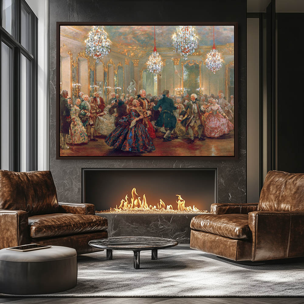 Vintage Figurative Painting with Figures Dancing in an Elegant Room at Castle Reinsberg