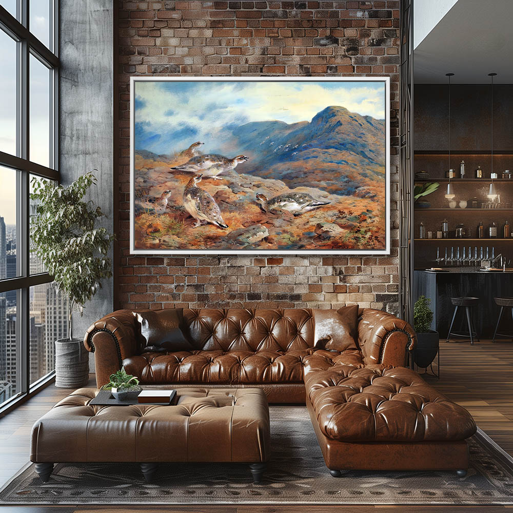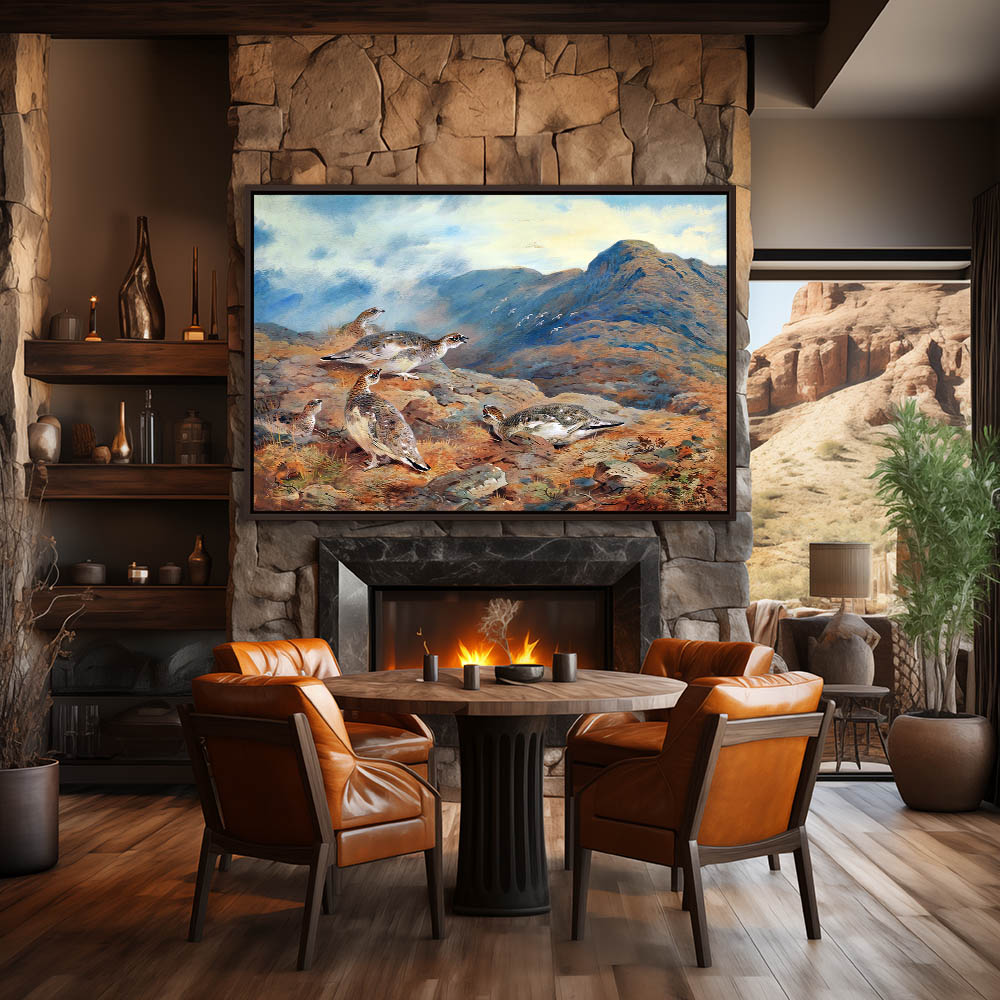 Mountain Landscape Painting with a Covey of Ptarmigan