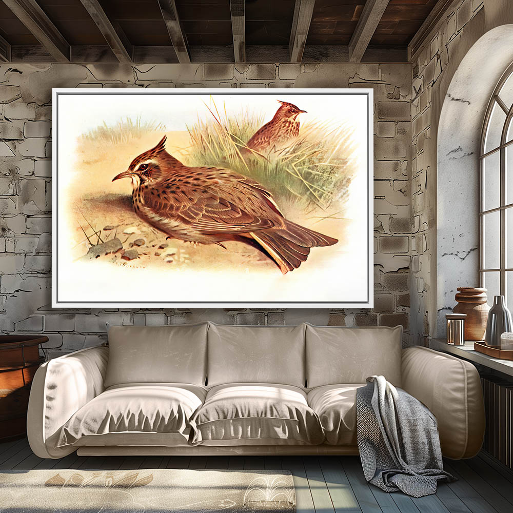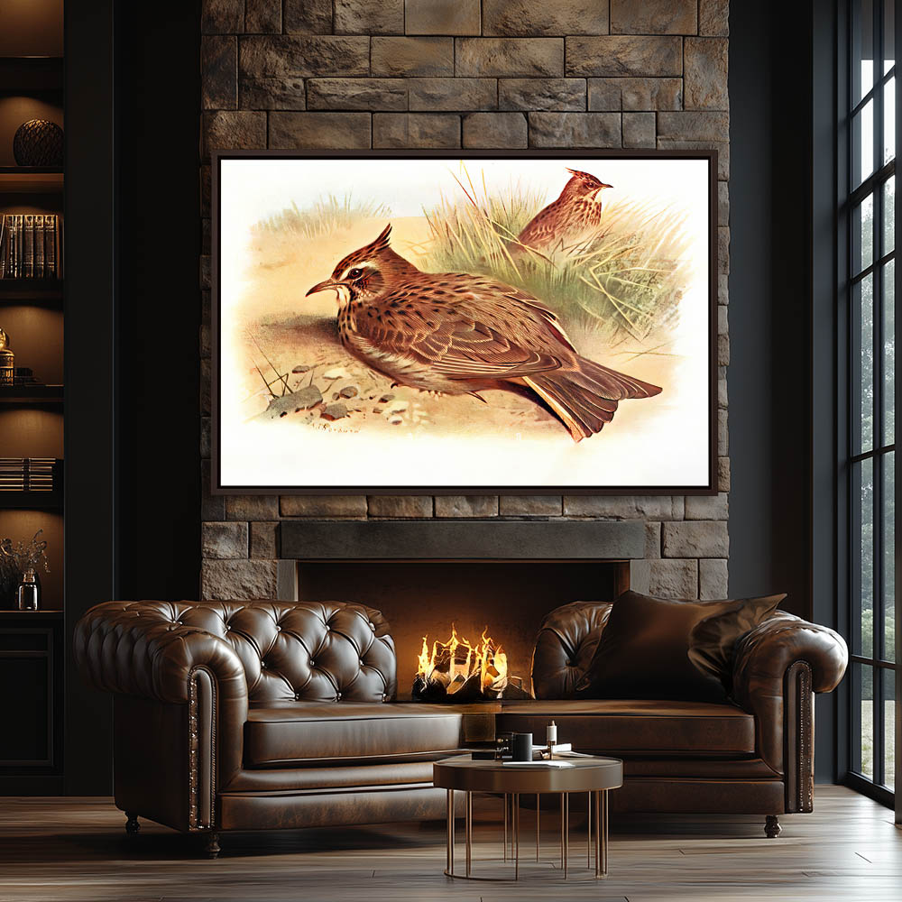 Painting of Crested Lark in the Sand and One in the Grass