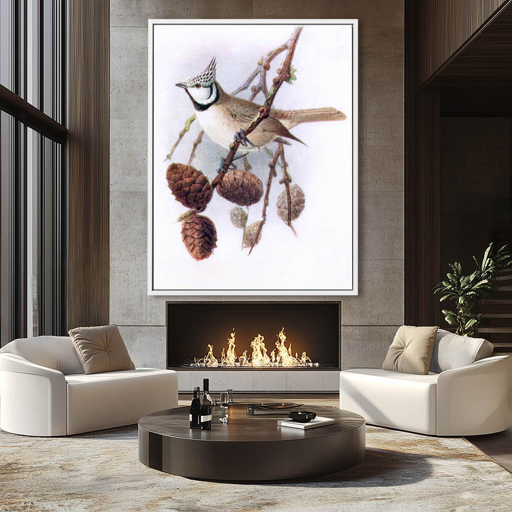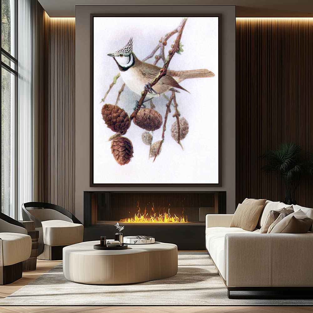 Painting of a Crested Titmouse Bird Resting on a Pine Limb