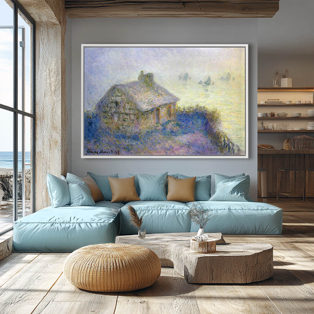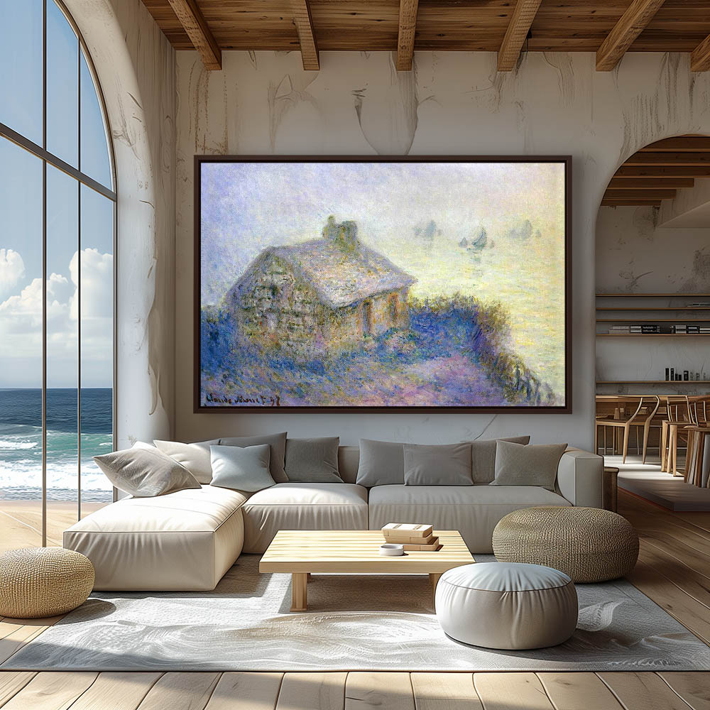 Vintage Seascape Painting with a Cottage on the Shore in Varengeville